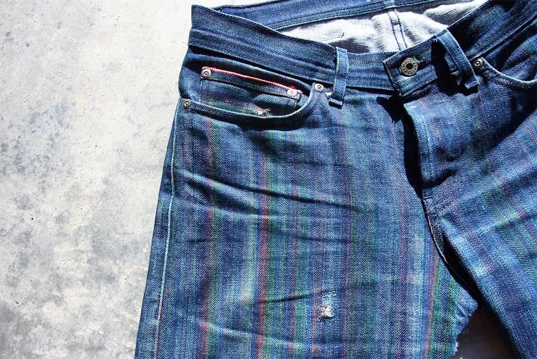 窄幅纺织机生产的布料有标志性的自锁边(Selvedge,又称赤耳)。自2017年底美国的百年牛仔布工厂白橡木(White Oak)关闭后,世界上最有影响力的复古牛仔布料工厂都集中在日本冈山地区。相信在品牌创立的十年间,一定逼疯了不少日本面料供应商。