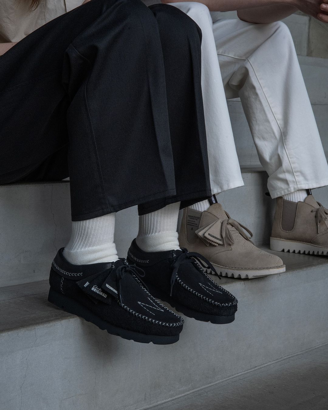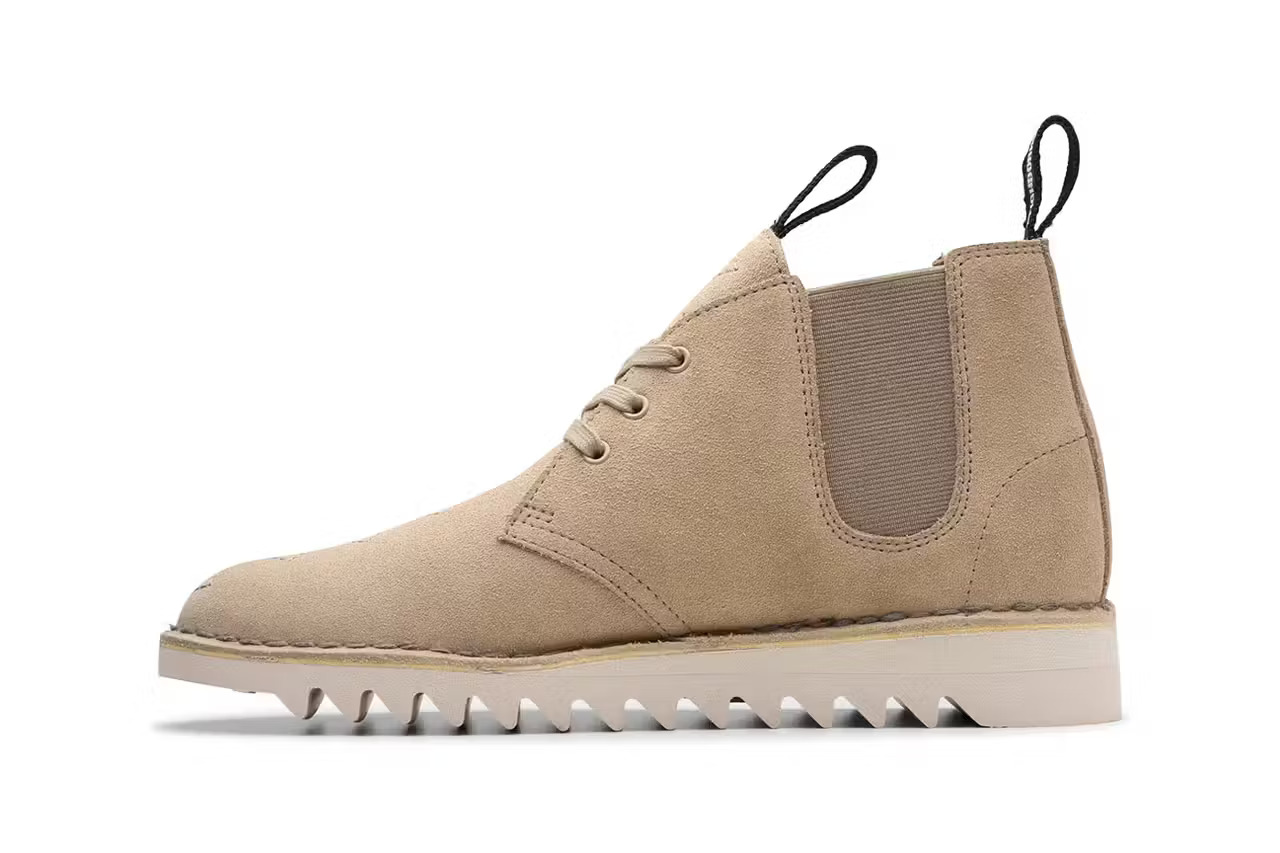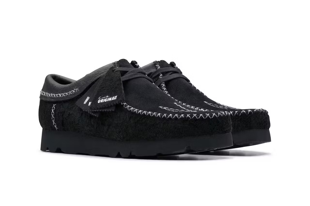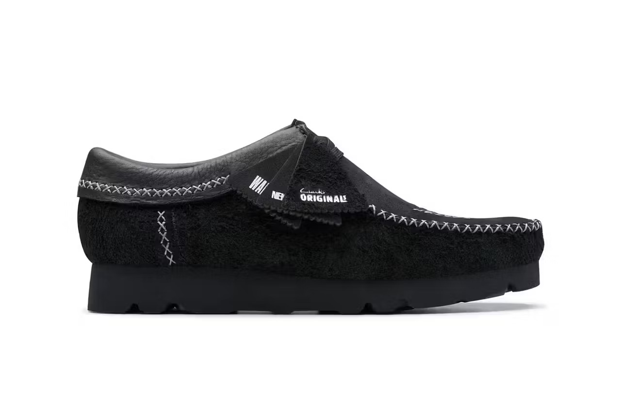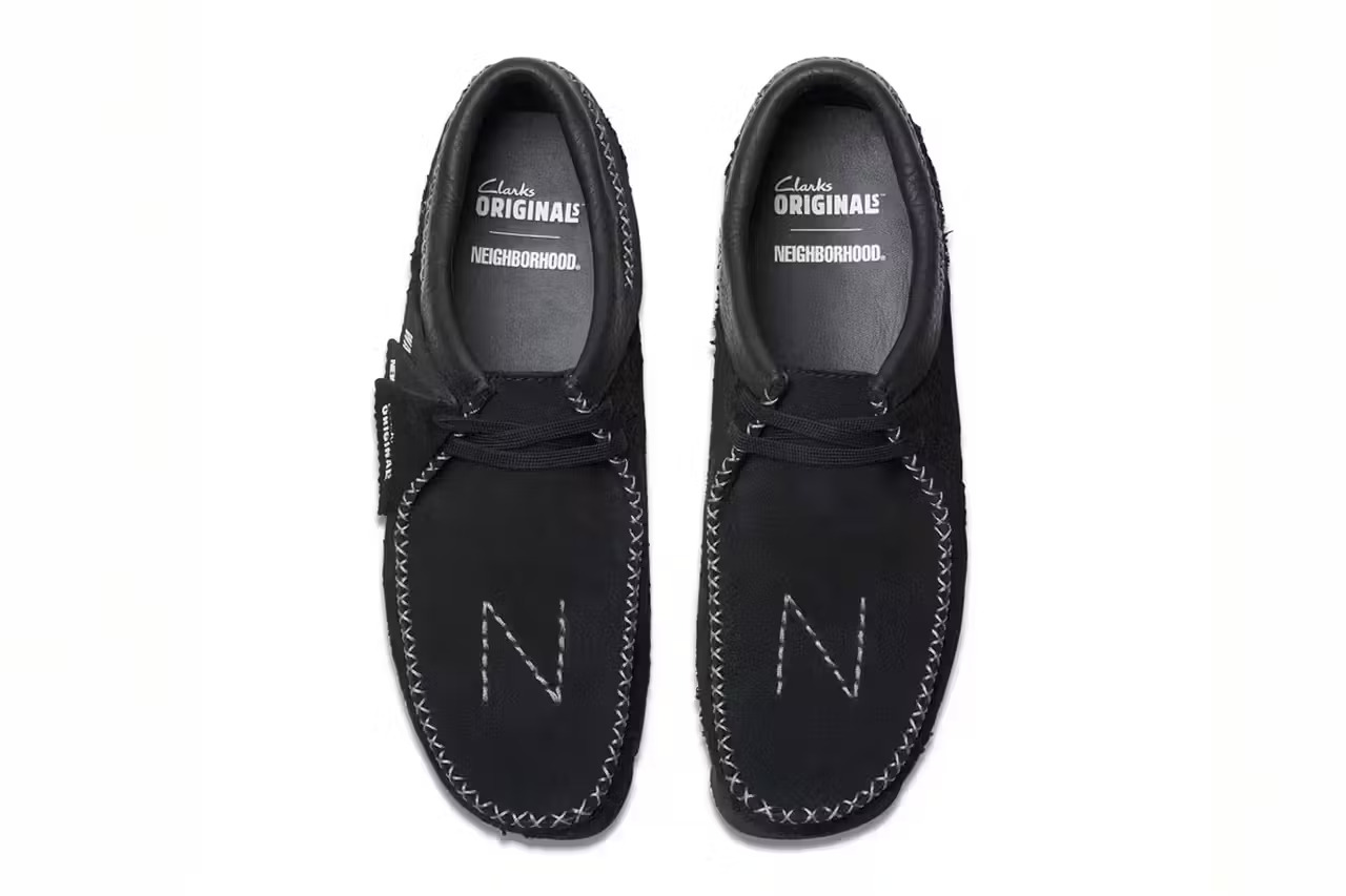 最近,Clarks Originals 联合大佬级日牌 NEIGHBORHOOD ,推出联名版 Wallabee 和 Desert Boot 。这其实并非双方的首次合作,NEIGHBORHOOD 与 Clarks 曾在 2022 年就联手重塑 Wallabee 和 Desert Trek ,不过当时的重点是通过使用 GORE-TEX 衬里和 Vibram 外底来抵御恶劣天气条件。在 2024 的最新合作中,两家单位换了一种设计思路,其中 Wallabee 以时髦的单色黑呈现,而在鞋身轮廓上更增添有外露缝线以加深特色;Desert Boot 则采用淡雅的土褐色调,搭配一直延伸至前掌的 NEIGHBORHOOD 品牌标志性锯齿形缝线。