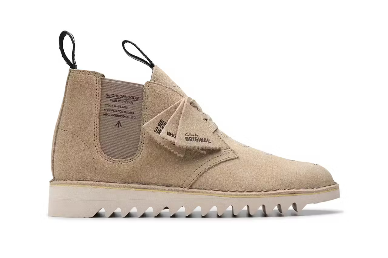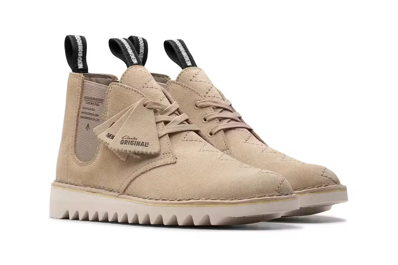 多年来,Clarks 的 Wallabee 和 Desert Boot 一直是合作的焦点,而且这些与不同品牌的联名也一次又一次巩固了这两款鞋作为文化合作试金石的地位,当然此次的 NEIGHBORHOOD 也不例外。据悉,Clarks Originals x NEIGHBORHOOD 2024 联名系列鞋履目前已在 NEIGHBORHOOD 官网发售。