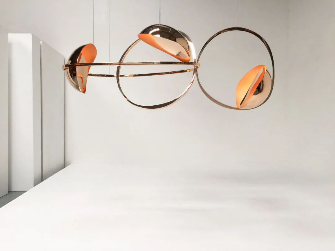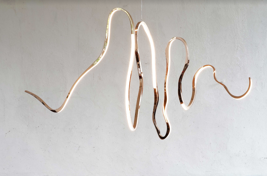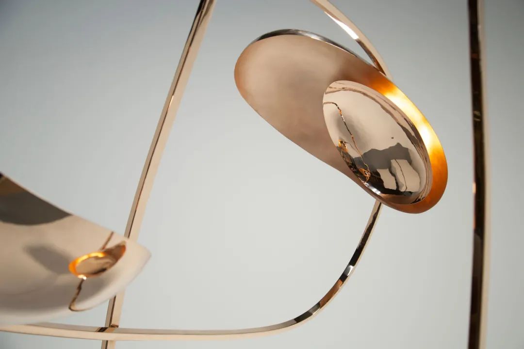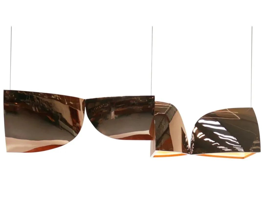 这件灯具大量使用了抛光青铜、玻璃材质,丝带般的形态使其更加灵活。