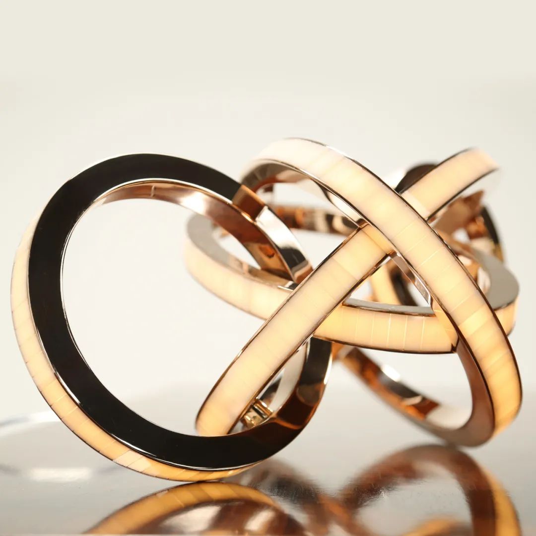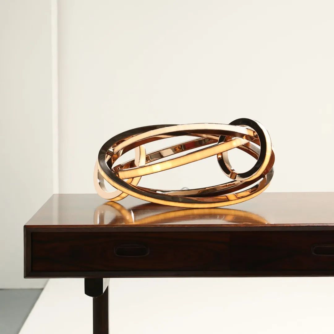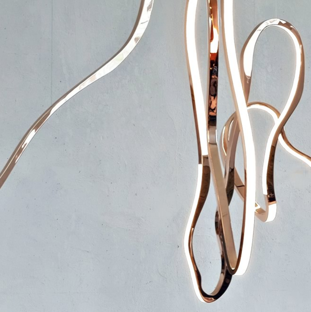 这件灯具大量使用了抛光青铜、玻璃材质,丝带般的形态使其更加灵活。