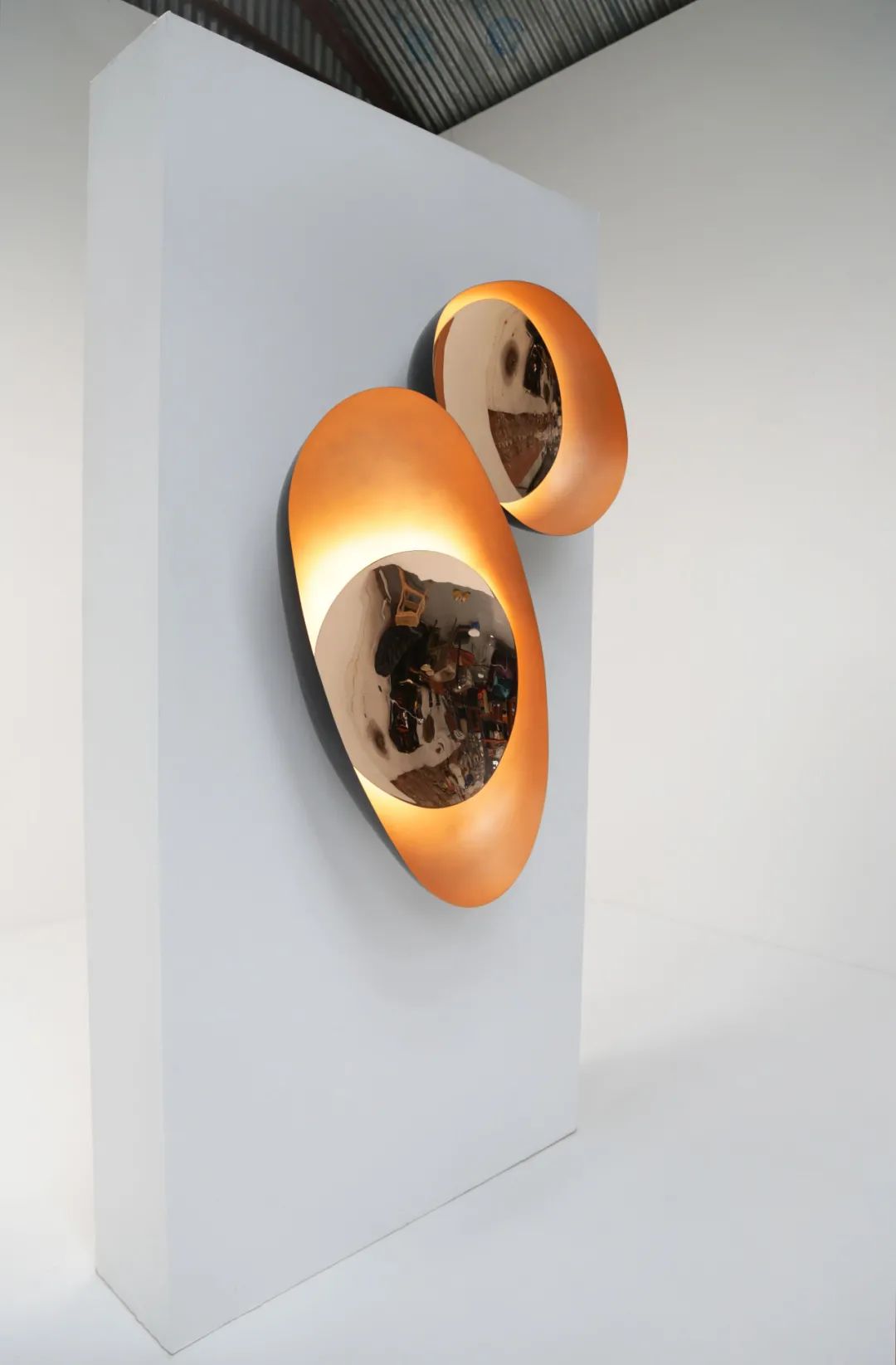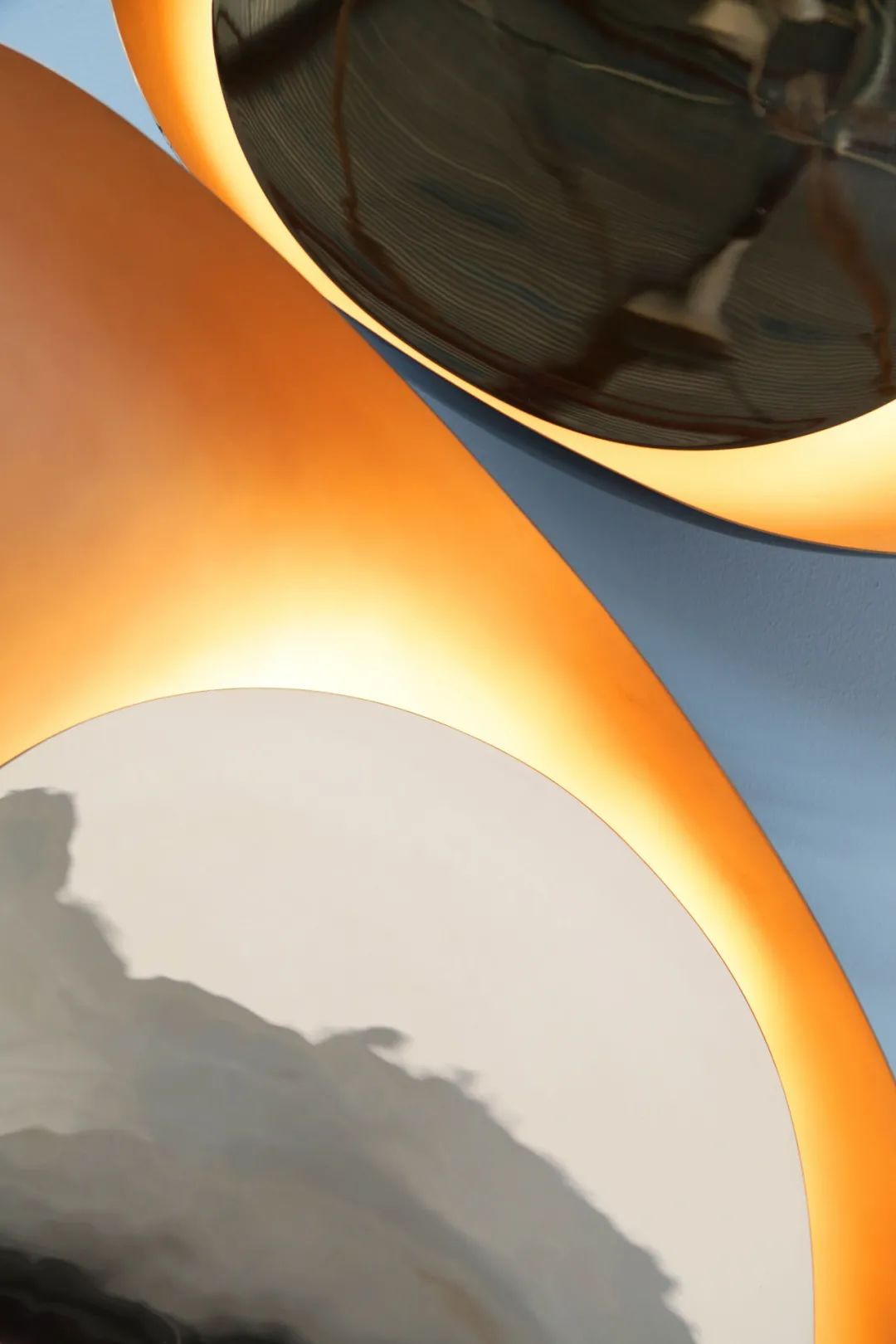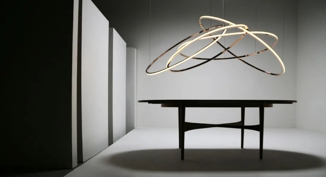 这座灯具呈现变形的椭圆形,内部光线以光圈形式呈现,表达出含蓄而温馨的美感。
