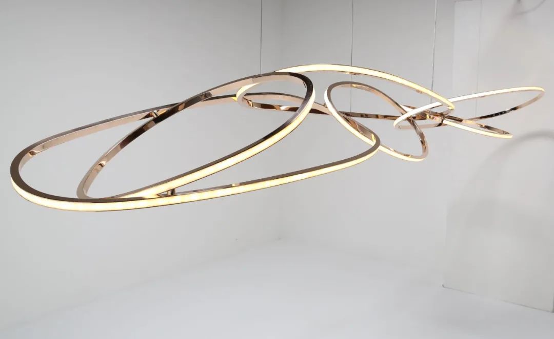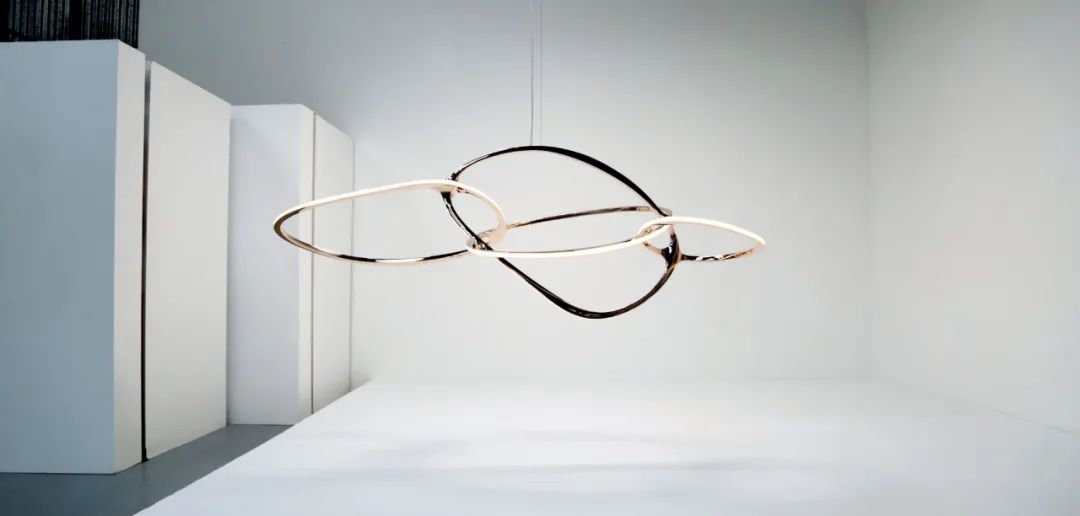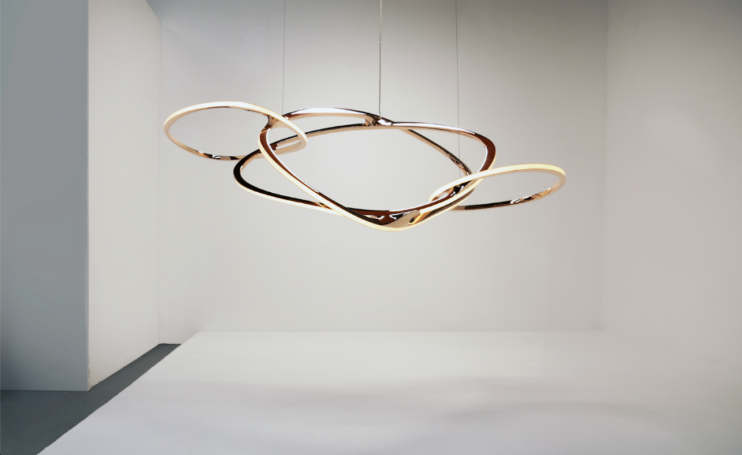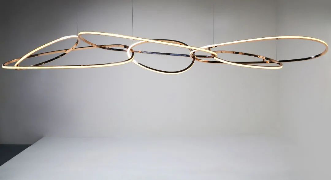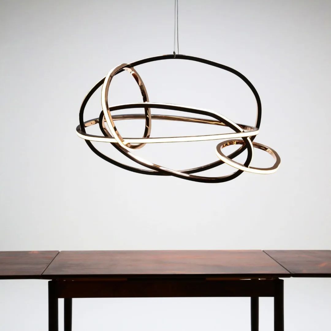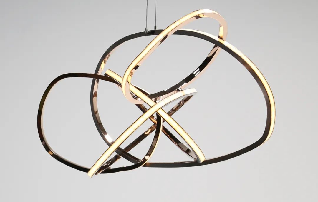 蜿蜒曲折的蛇形,将五个椭圆交织成密集的整体,灯具因此展现出极强的凝聚力。