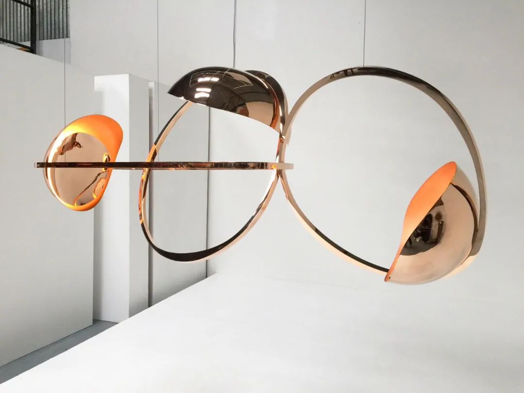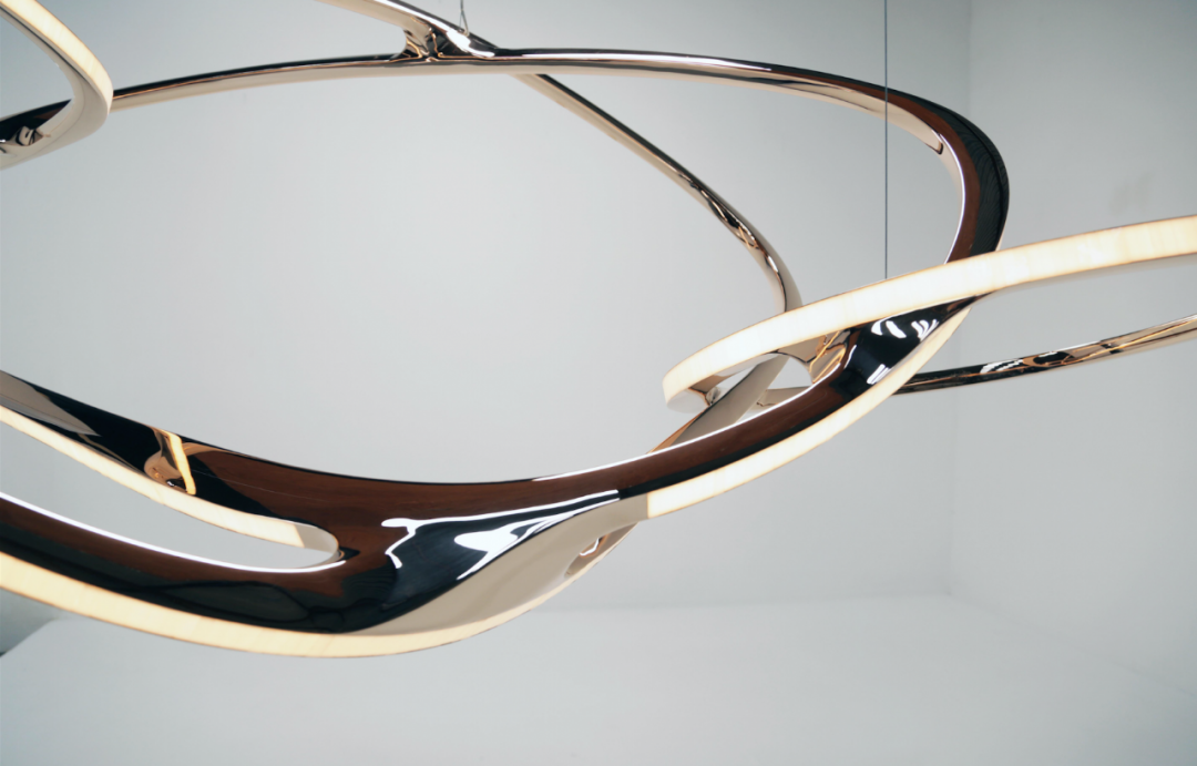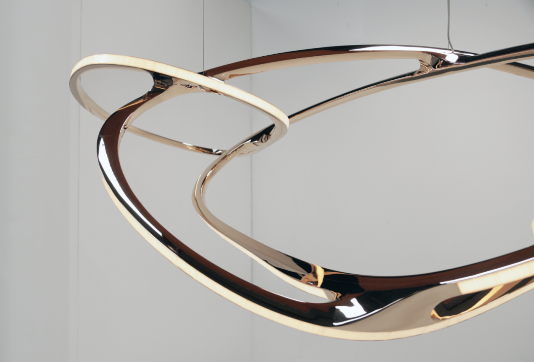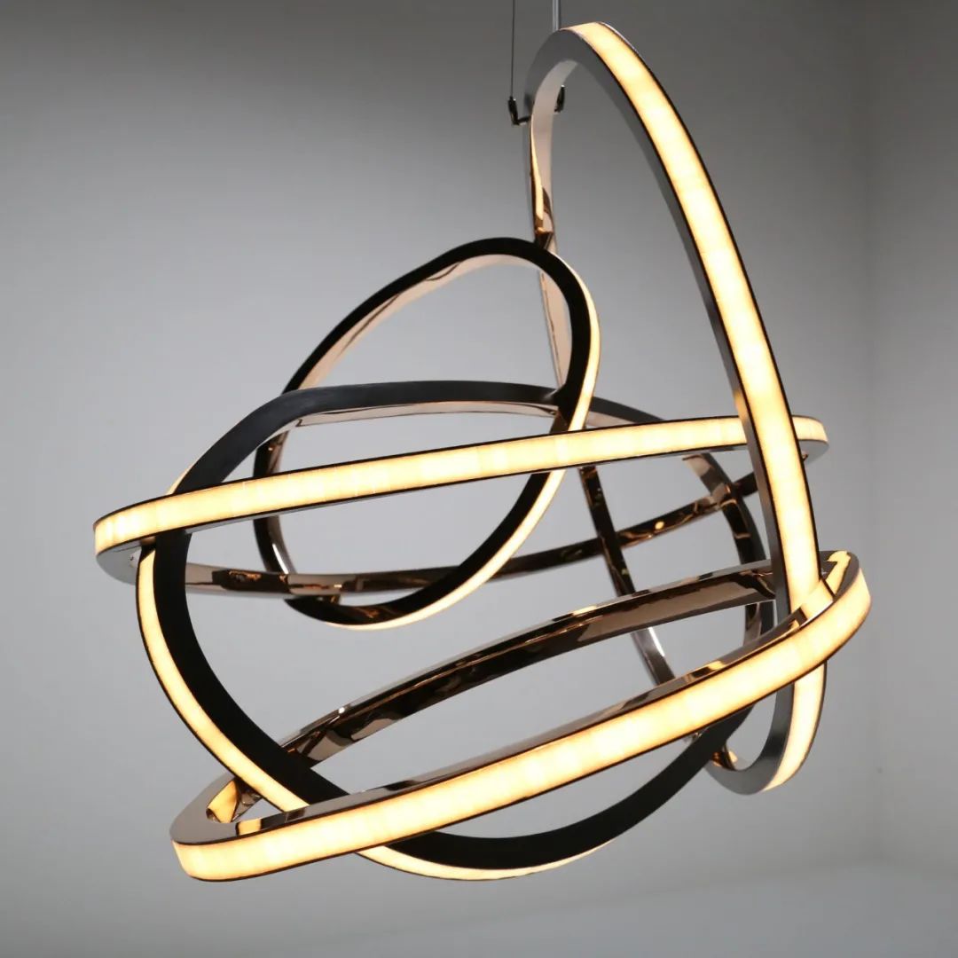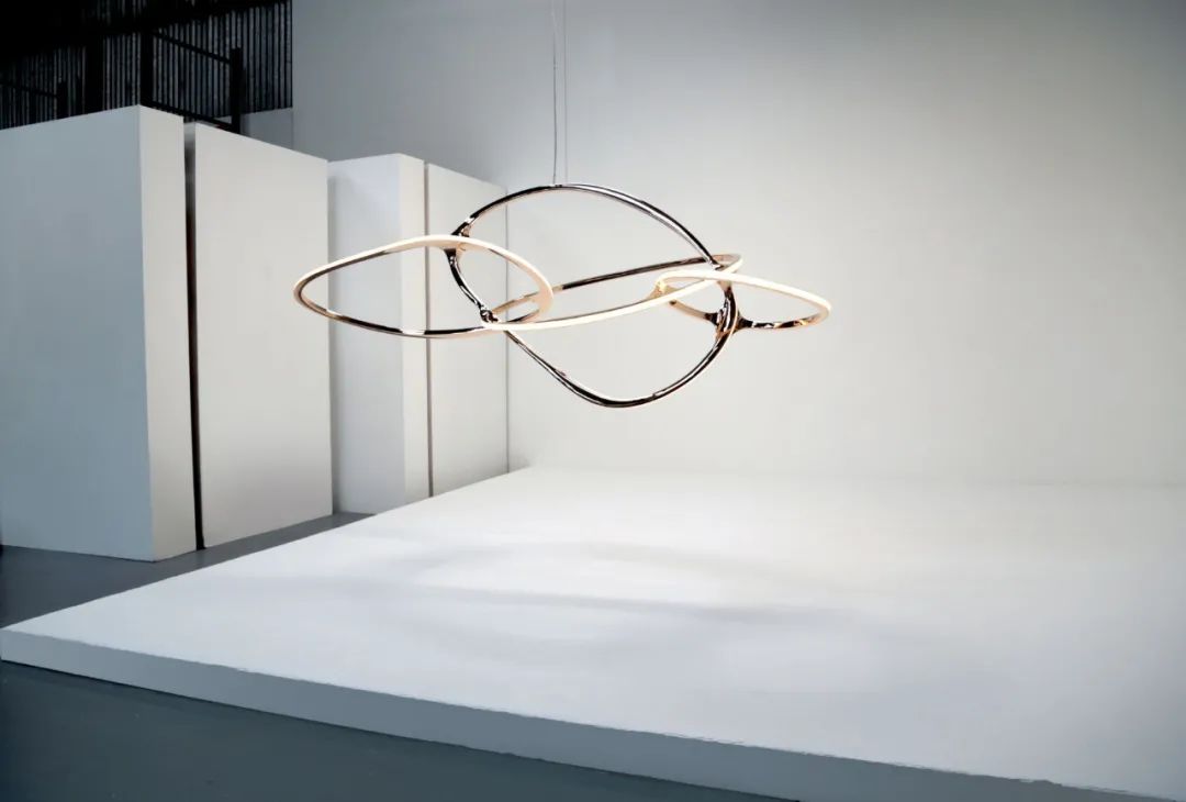 蜿蜒曲折的蛇形,将五个椭圆交织成密集的整体,灯具因此展现出极强的凝聚力。