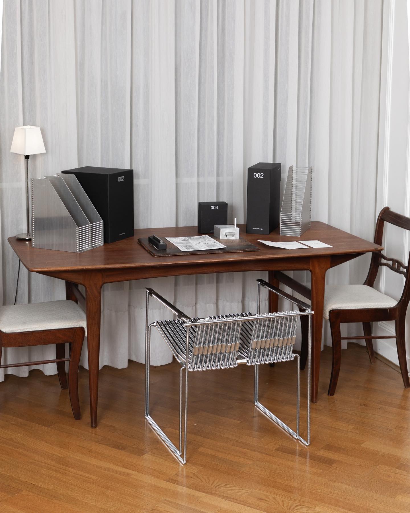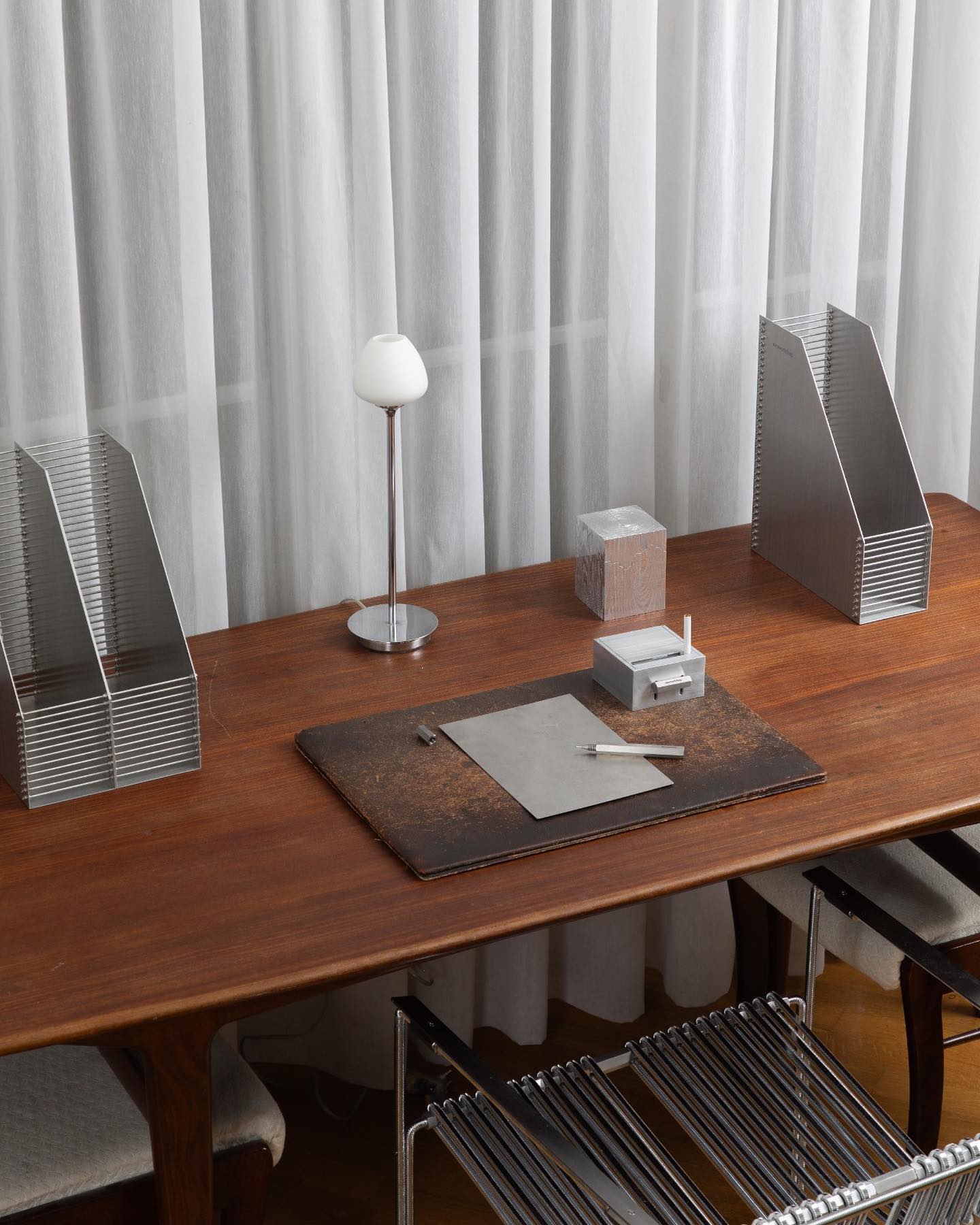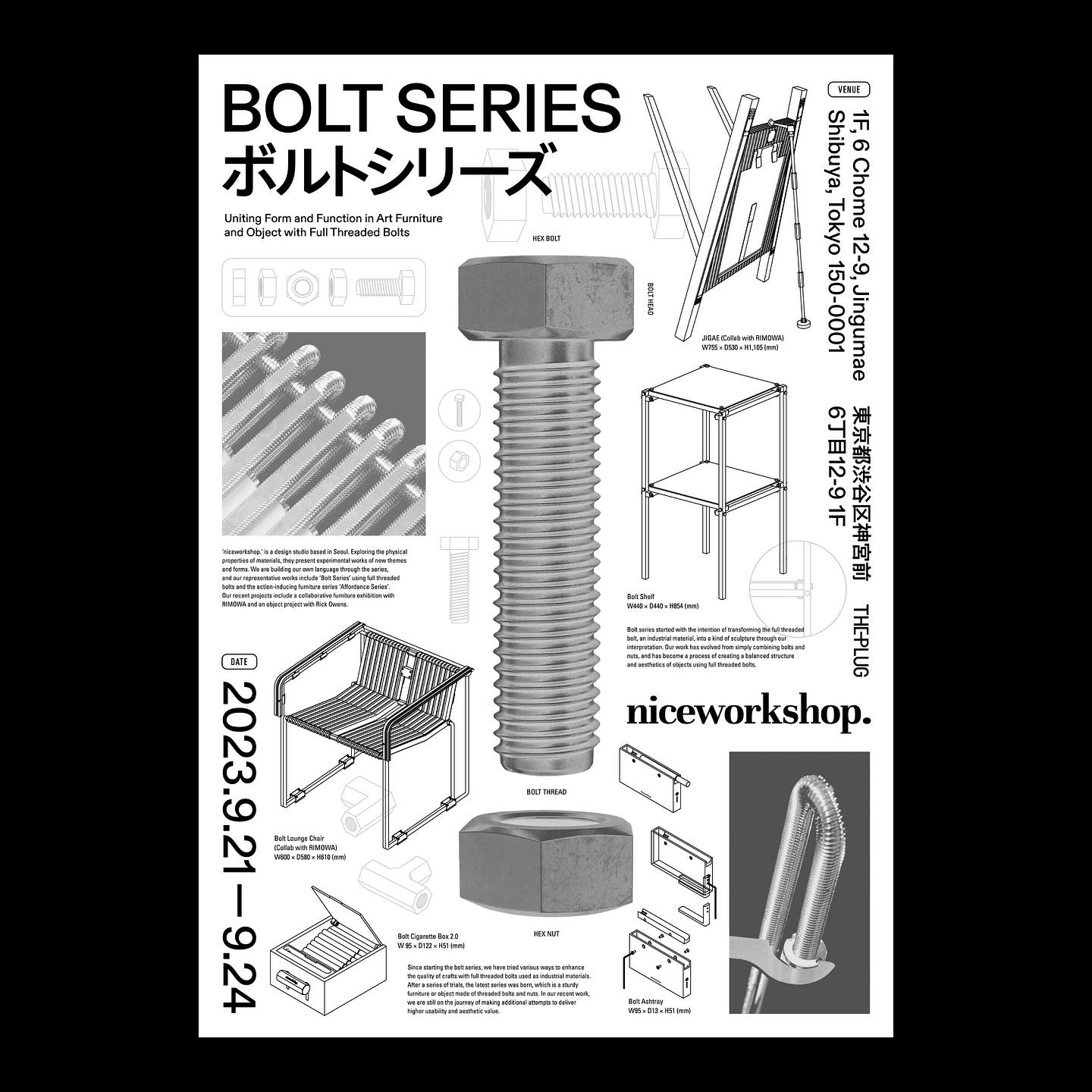 niceworkshop. 一直致力于探索材料的物理特性,并在家居上呈现实验后的作品,最近也与 RIMOWA 和 Rick Owens 等品牌不断合作。此次在“THE PLUG”展出的 Bolt 系列也是 niceworkshop. 探索如何将全螺纹螺栓从工业材料转变为一种雕塑,将最原始的螺栓和螺母创造成家居的平衡结构,为椅子、雪茄盒、衣架、圆珠笔和文件盒等日常实用物品赋予了新的美学价值。
