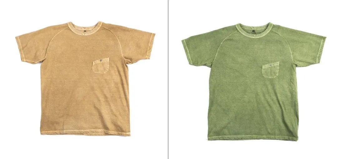 Pigment Dye系列采用颜料染色处理,颜料不会染透纱线这样在穿旧之后也会呈现斑驳的落色效果,正常染色版本不会因为穿着和洗涤带来很大的变化一直保持崭新。
