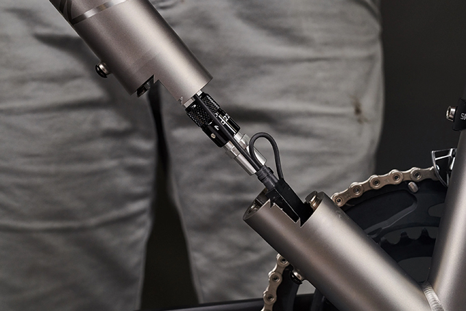 No. 22 这个有趣的新型联轴器系统可将自行车一分为二,以最大程度减少可包装性方面的问题,并增强紧凑性。虽然 “Coupling System” 听上去挺简单,但它其实比自行车行业中任何传统耦合系统都要复杂得多。摒弃繁琐和复杂,该创新设计充分利用了定制的薄型框架联轴器,其 “Brake Break” 液压软管系统也能很好解决内部布线的问题并简化六角螺栓构造,以便在几秒钟内就将自行车一分为二。内部布线在车架的断点处耦合,这意味着可以轻松地从自行车的前部卸下制动器。据悉,No. 22 极具革新性的 Coupling System 将会应用于公司后续的主要自行车生产线。