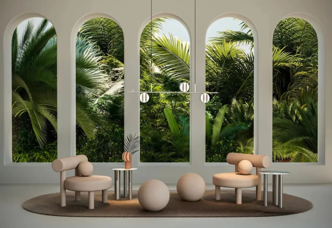 圆形座椅和圆柱形状无背长椅给人带来愉快的心情,也同样具有舒适性。