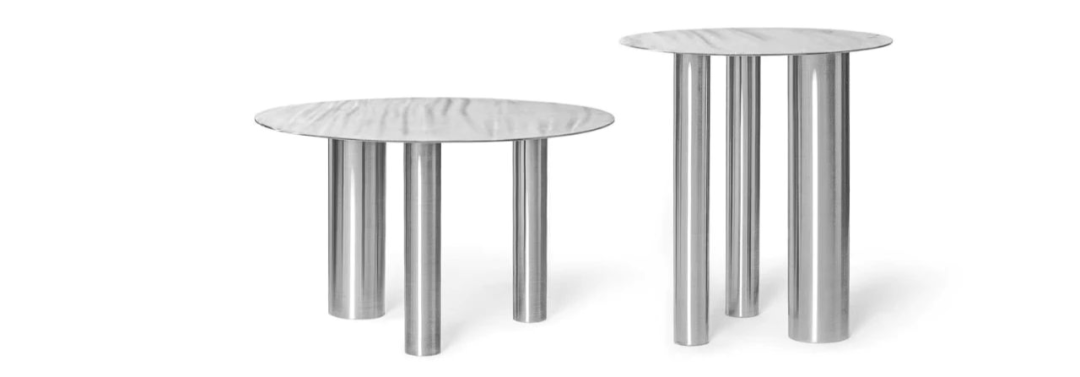 桌面由三个不同直径的圆柱腿支撑,不对称的设计赋予了桌子更高的设计感,像是一件实用的艺术品。