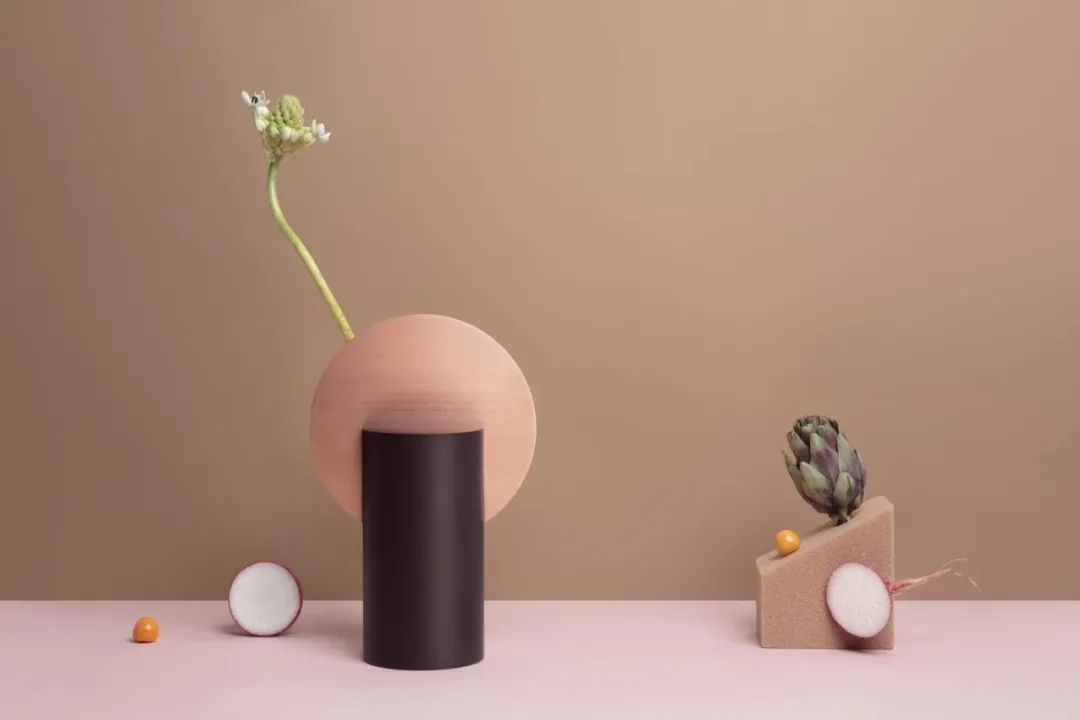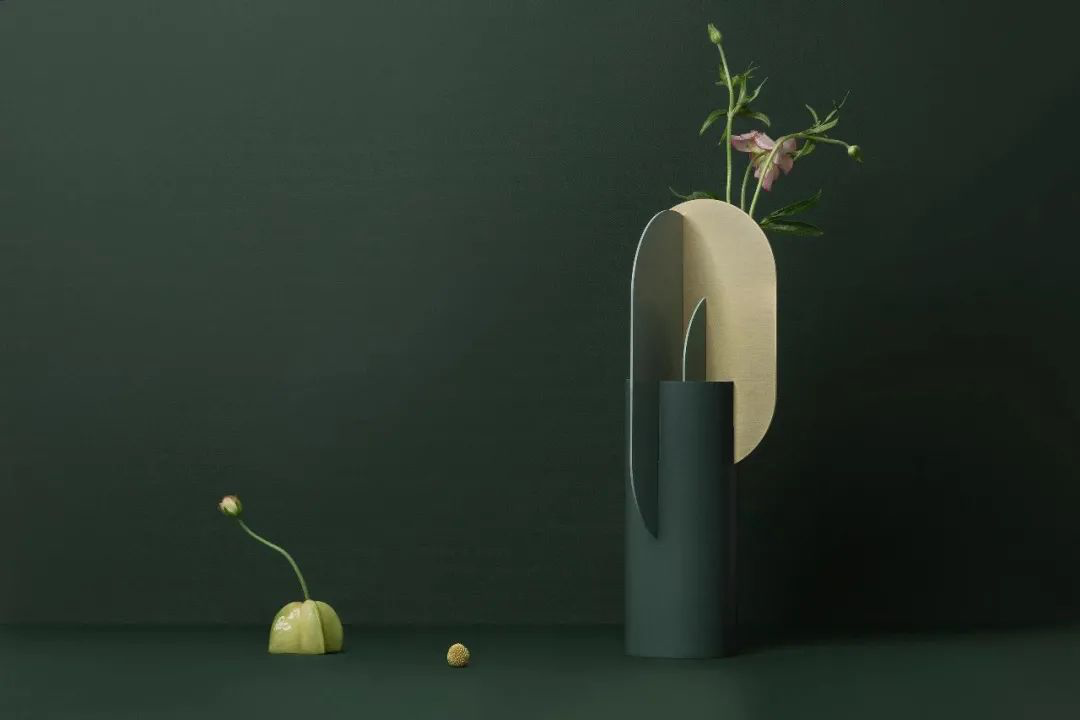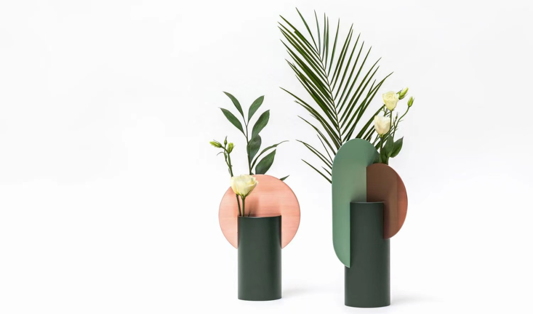 花瓶的几何结构不仅是一种装饰,也是花卉的功能分隔部分,花瓶与花结合起来十分优雅。
