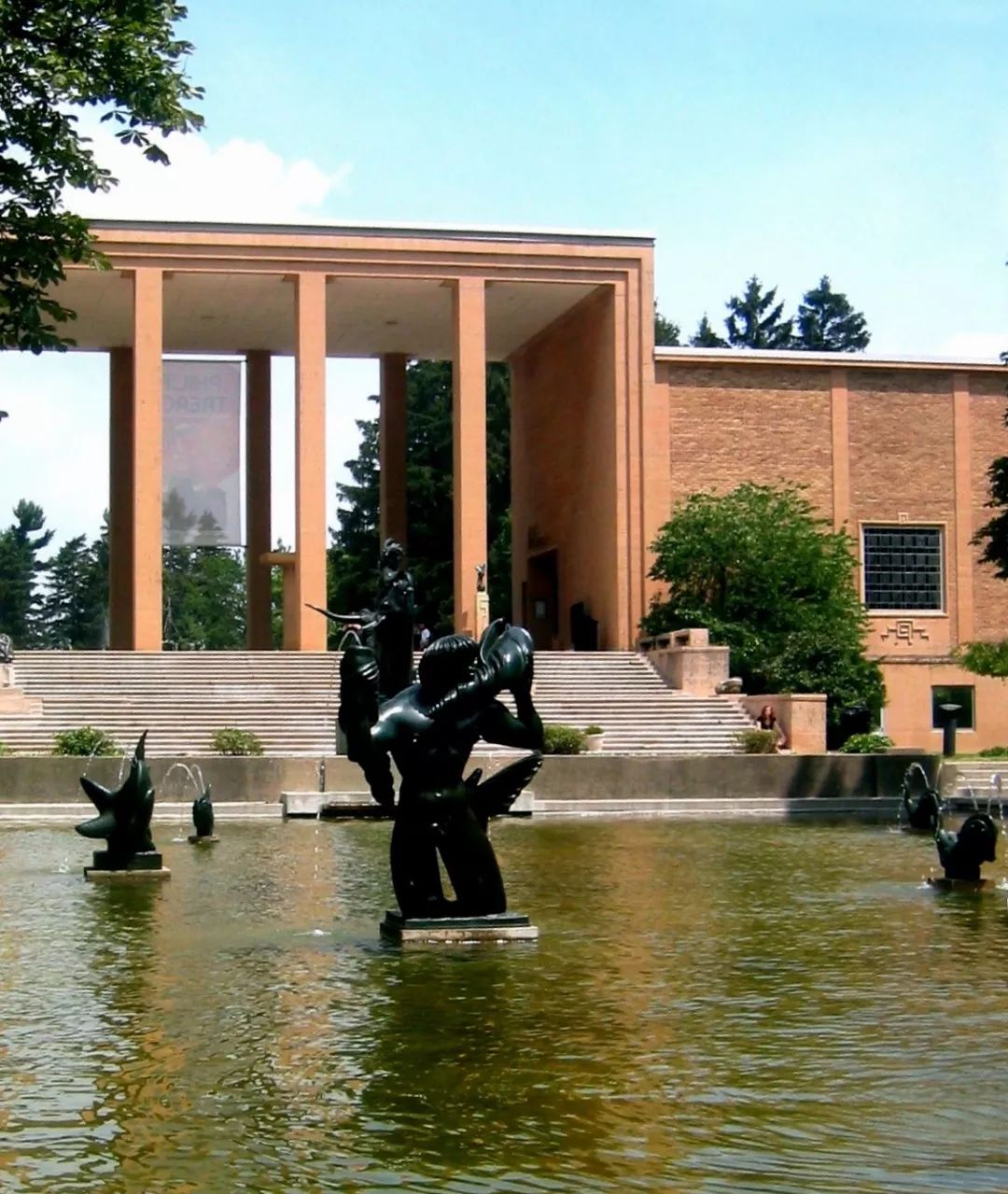 克兰布鲁克艺术学院开创了具有美国风格的新工业设计体系,被称为“现代美国设计的摇篮”。学院大门的四个方柱既象征着古希腊神庙的庄严,又意味着历史与未来的接轨。