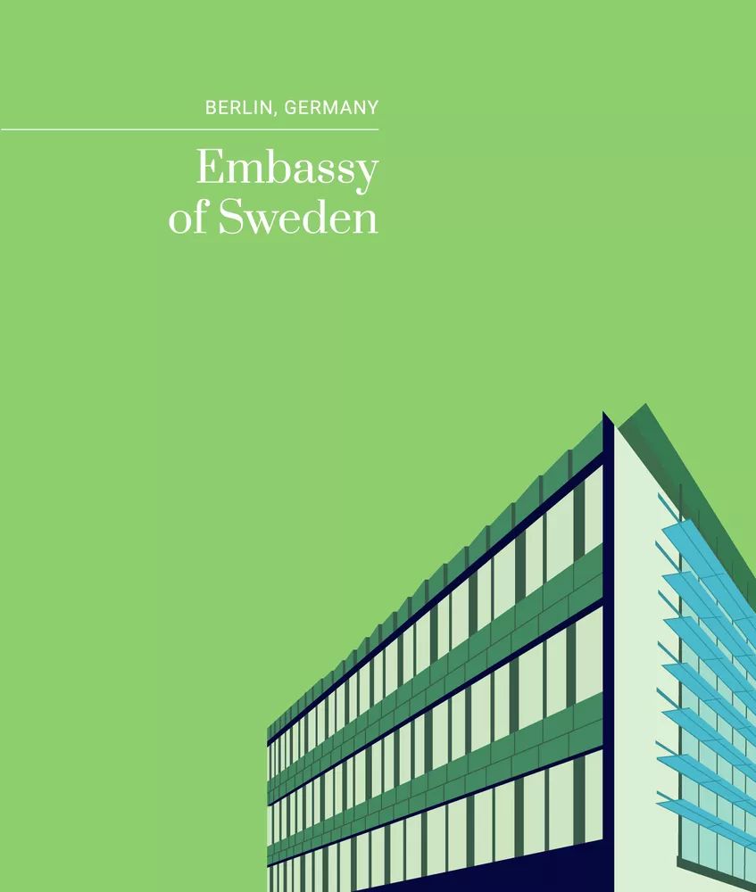 瑞典大使馆的两个立面一侧采用的是黑色抛光花岗岩,另一侧则用的是白色石灰石,黑白对比形成了阴阳相对的效果,为整个建筑增添了独特的雕塑感。