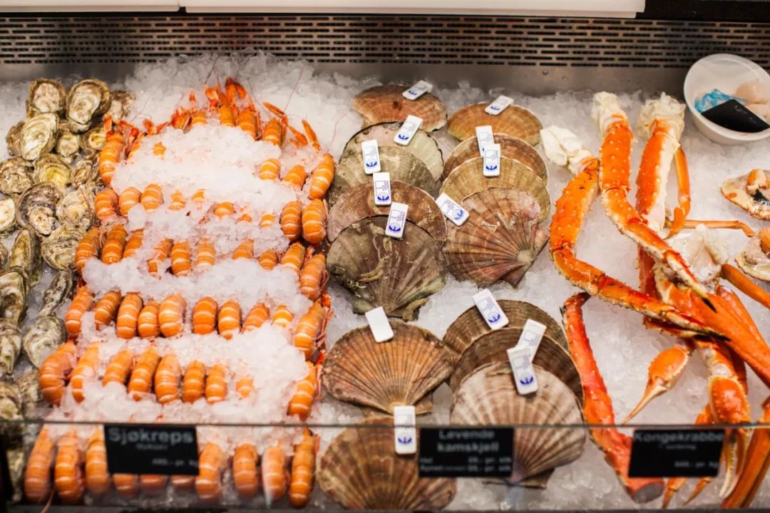虽然是跟团旅行,但也有很多的自由时间!在哥本哈根逛了菜市场,来卑尔根就看看鱼市场,沿着海边铺开若干档口,整个一北欧小筑地。三文鱼、鳕鱼、帝王蟹,还有各种鱼子酱,挑你想吃的现做现卖,口味够重的话,挑战一下鲱鱼罐头?