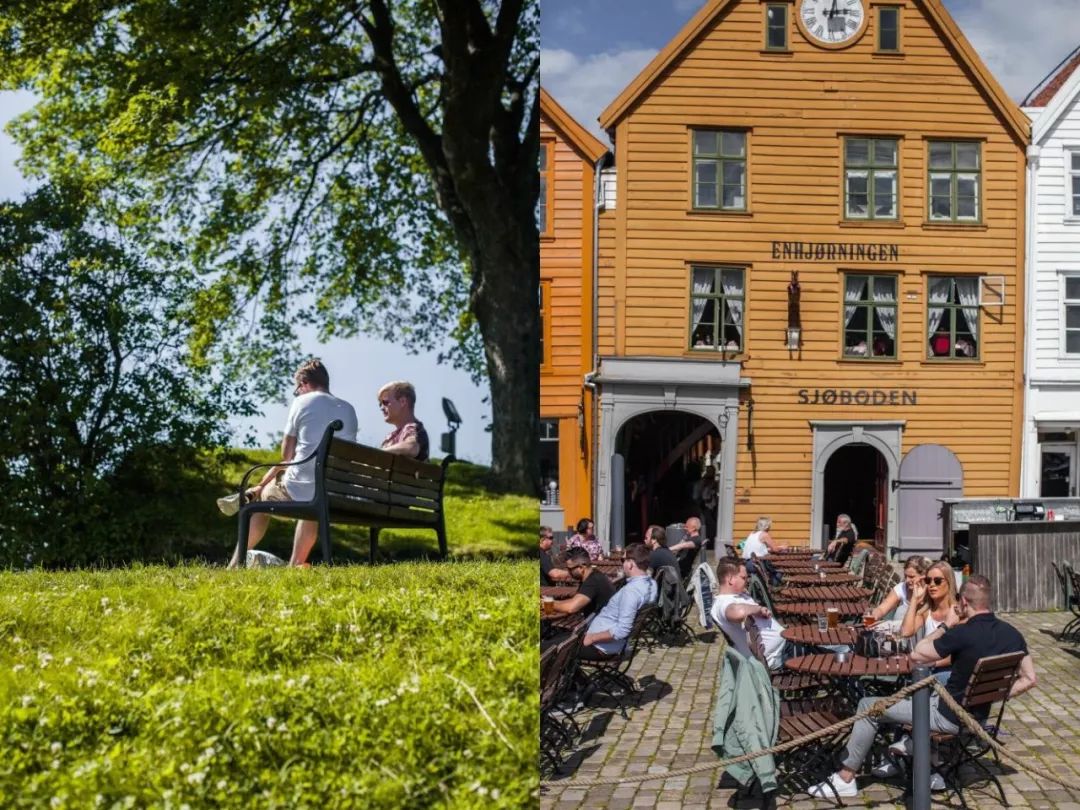 旅行的第二站——挪威卑尔根。小城不大,用脚就可以走完,跟着 local guide 边聊边逛,从海鲜市场散步到布吕根区,整座城市的历史也在脑中渐渐清晰。推荐两个地方,一个是弗洛伊恩山,可以坐缆车登顶,俯瞰海湾风光。还有一个是这家 3-KRONEREN 热狗店,超好吃!