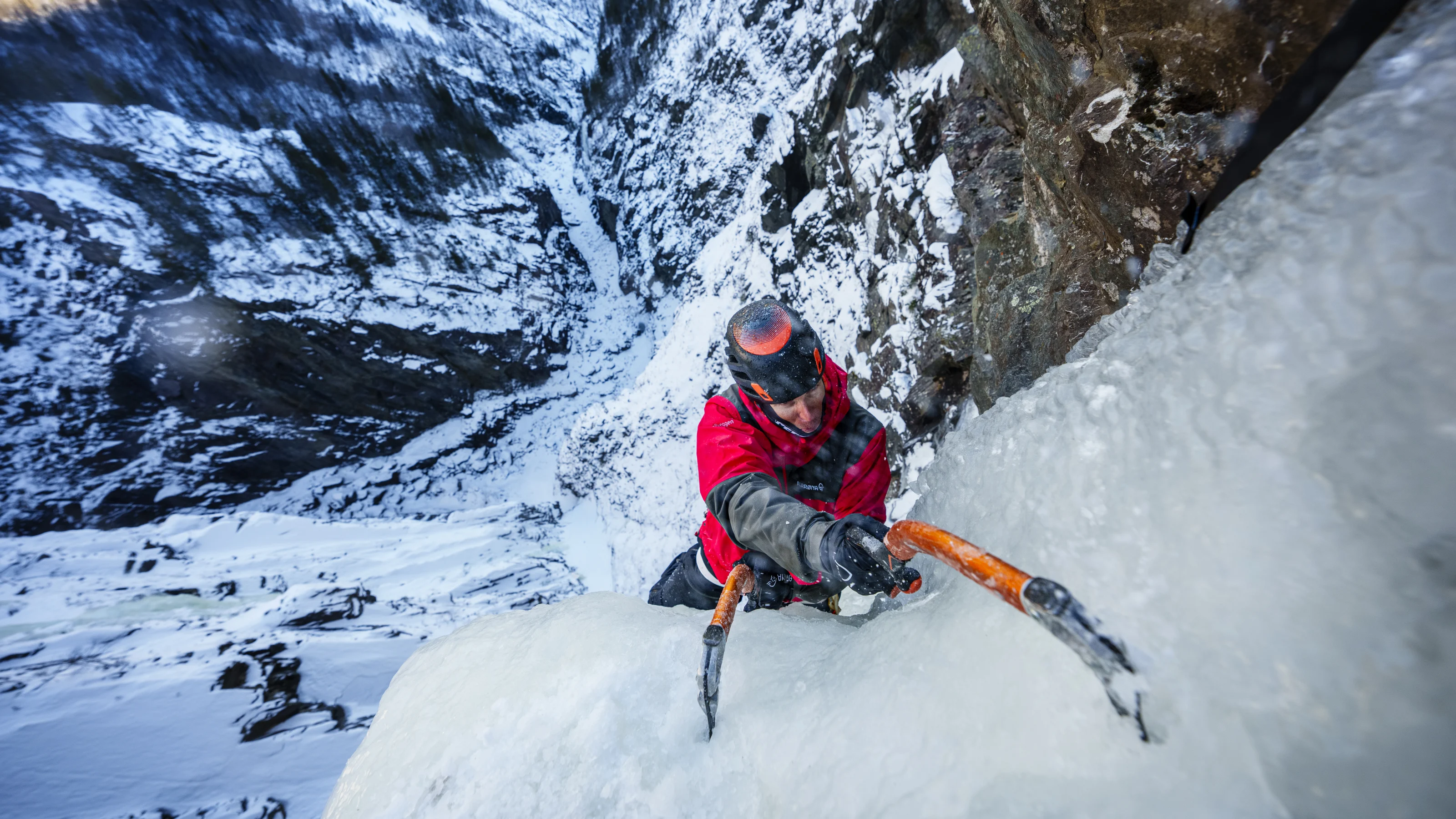 主打高山攀登的 trollveggen 系列(注:trollveggen 意为“巨魔之墙”,是挪威中南部的地标之一,坐拥欧洲最高的垂直峭壁),最初源自1977年欧洲首款Gore-Tex夹克;而后专为高海拔攀登与恶劣环境定向研发,多年来持续精进迭代,如今已是登山领域的标杆性产品。