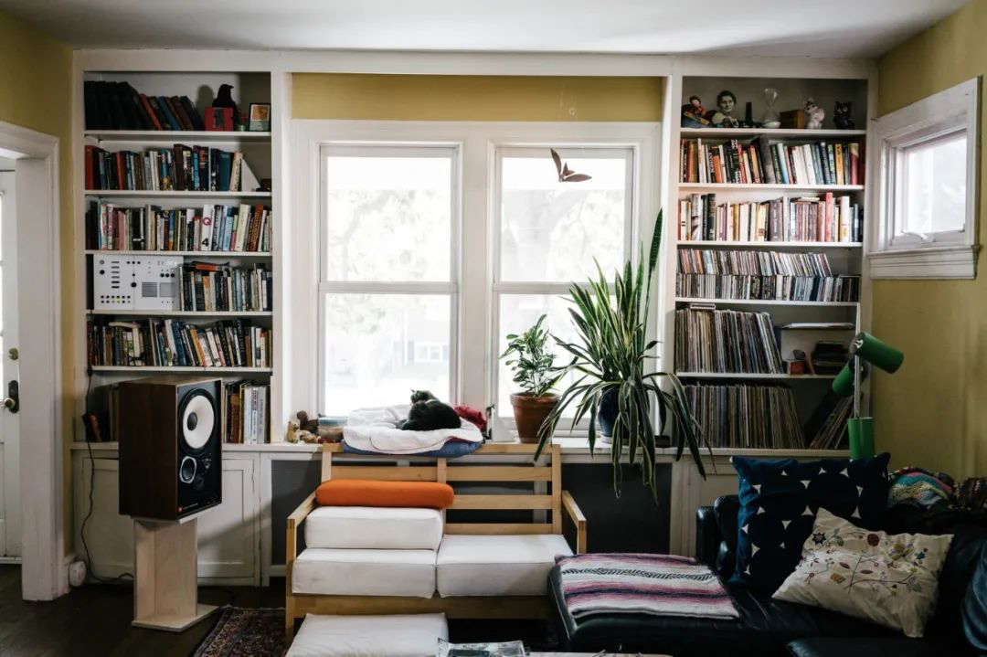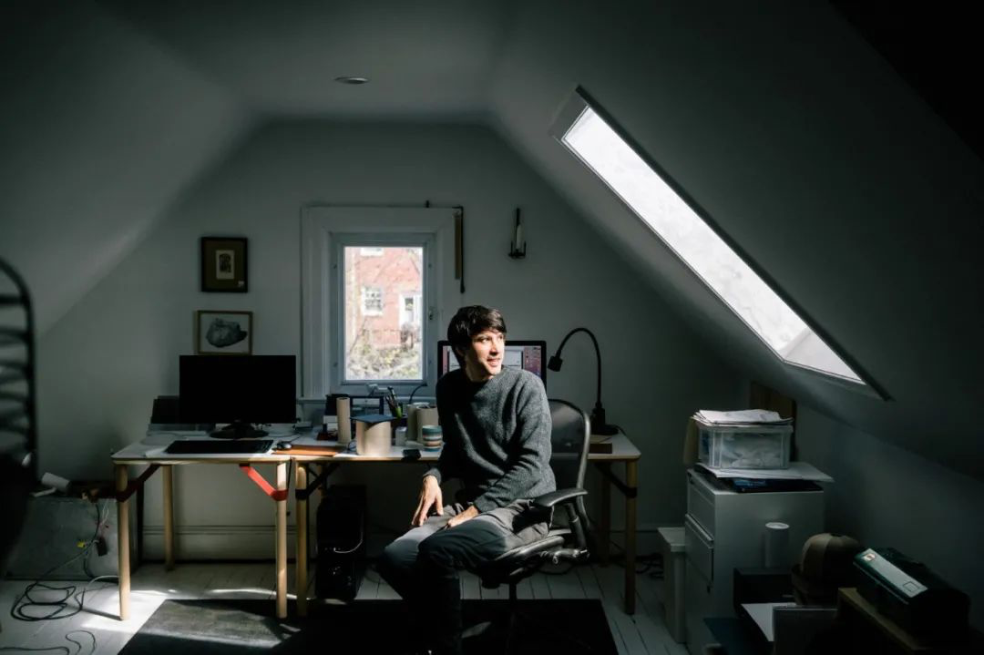 工作室像是一面倒影人生经历的镜子,里面能瞧见生活的各种缩影。窗户下的钢琴,书架上的CD,木桌上的手绘草图,还有墙角盯着人看的猫咪。