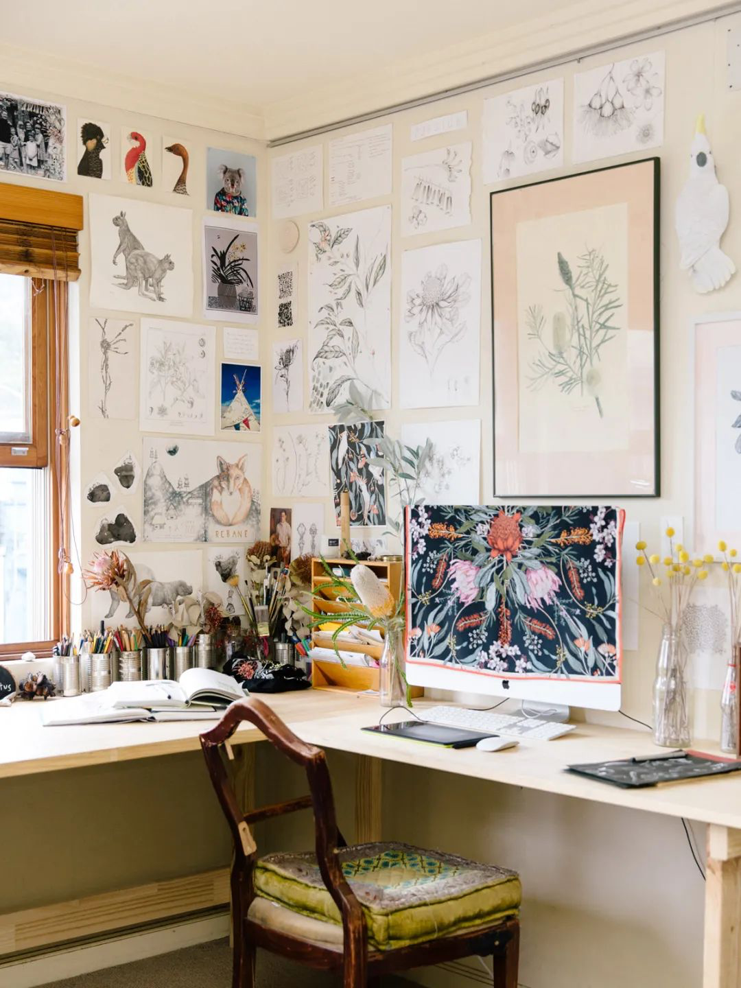 有了自己的网店之后,工作室的形态变得更为自由,我可以按自己的心意去装点它。最开心的事情不过是,把自己的作品都挂到墙上。