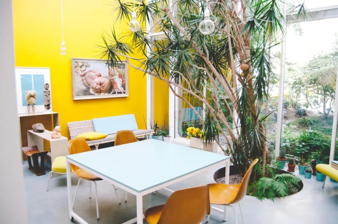 PARIS TEXAS是一个比利时画廊工作室,由建筑师Nathalie和雕塑家Tim创建。两位主理人打造它的目的是想要在当地运营一个艺术家社区。有趣的是,工作室的名字跟两位主理人的故乡有关。工作室的原形是一个老仓库,在Tim和Nathalie发现它之前已经有几十年没有人接手,仓库处于一种破败不堪的状态。工作室在改造之后变得风格突出,在明亮的黄色氛围的笼罩下,带有热带风情的室内花园为工作室增添了一种异国情调。