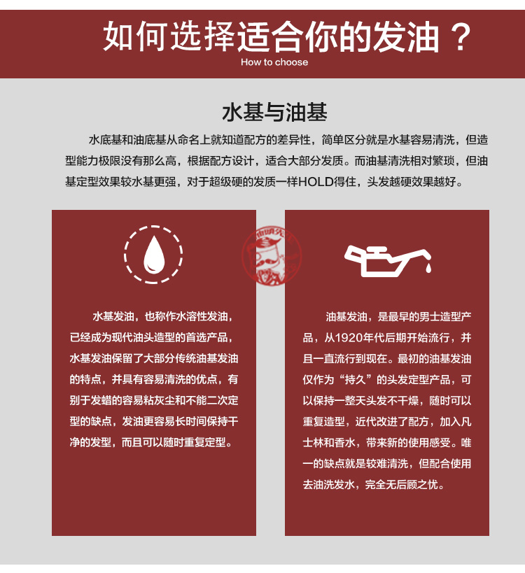 头发硬,就需要选择黏度高的发油,才能把头发往下黏,头发软 想要蓬松的发型,就需要用完硬一点的发油,才能把头撑起来。