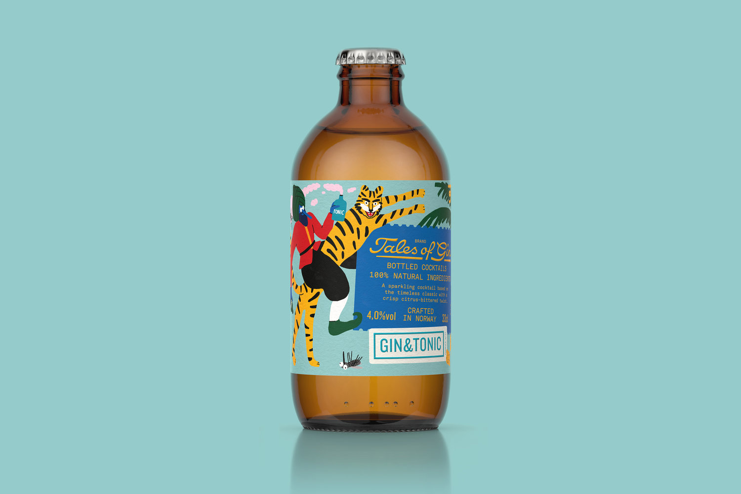 瓶身的插画是由插画艺术家@egle_zvirblyte绘制的,每个瓶子都带着鲜活的故事性,跳跃的色彩和轻松幽默的简笔画风格,完美的呈现出年轻人心中,酒精带来的愉悦感。