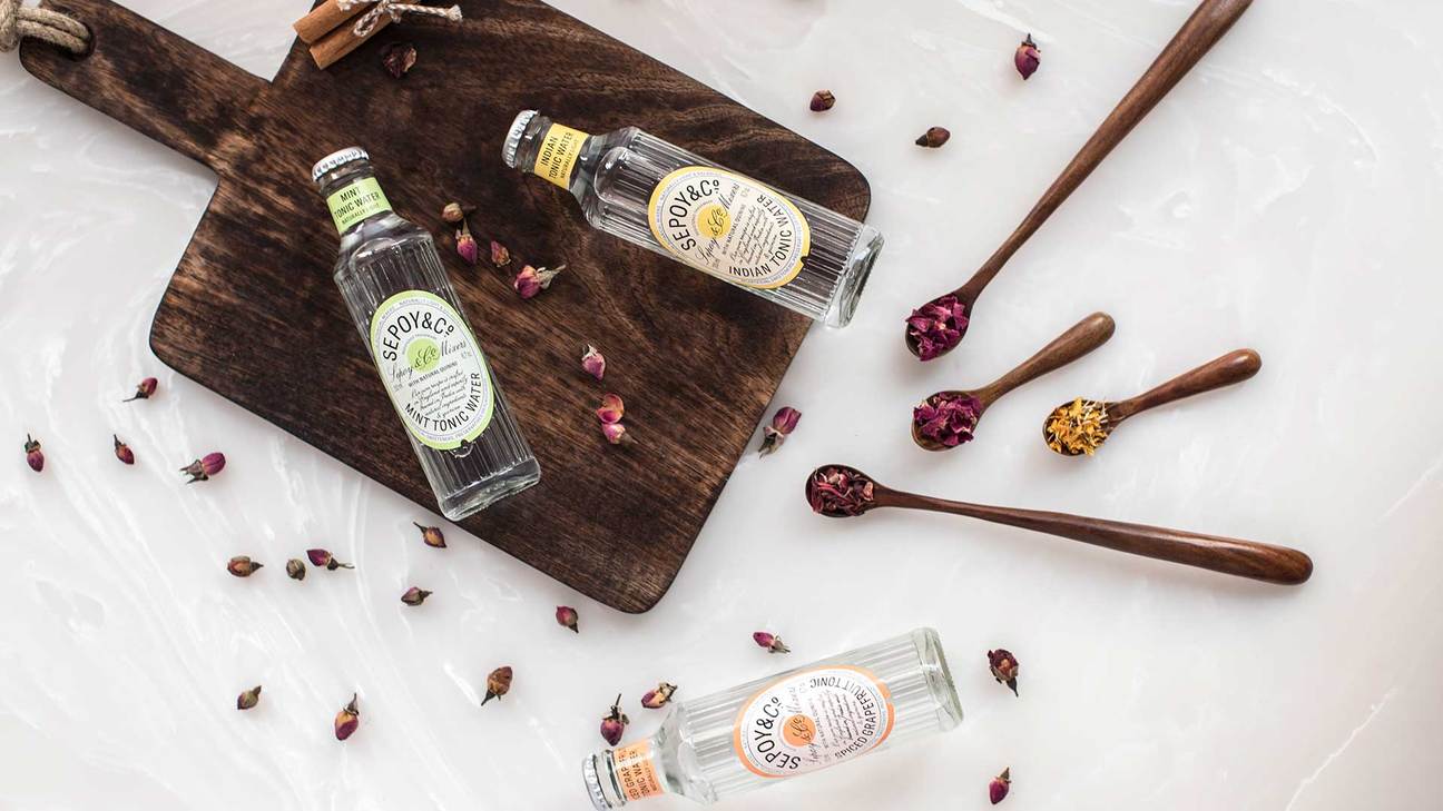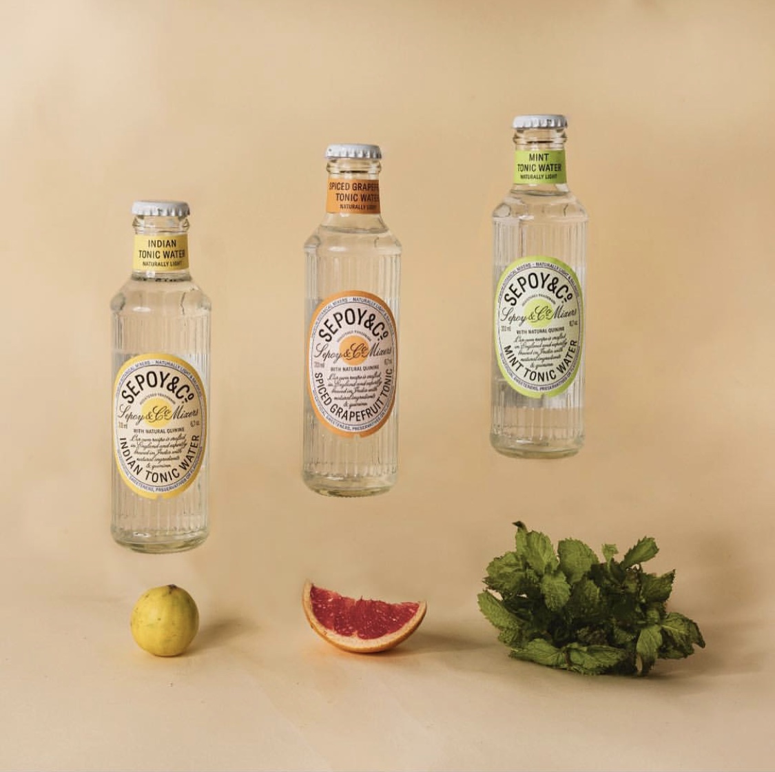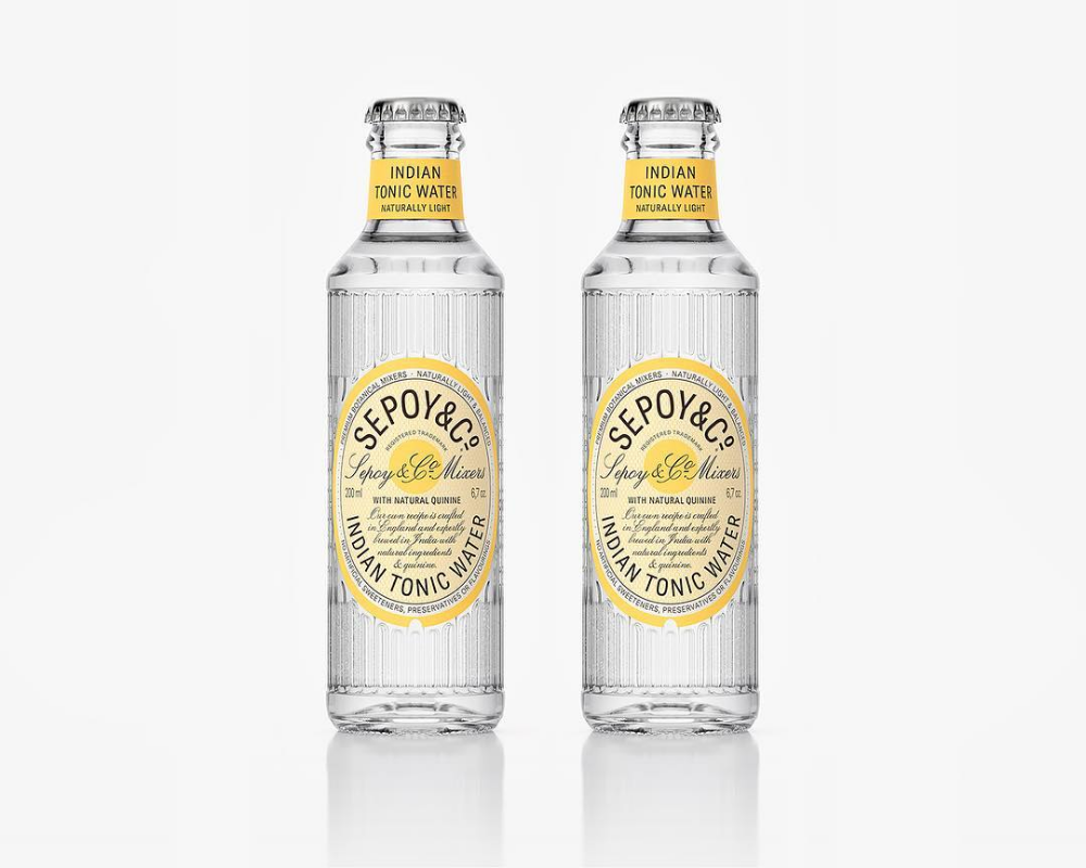 Sepoy&Co是一个来自印度的汤力水品牌。复古汽水瓶的造型,时尚感十足,竖条纹设计让整体质感更精致,椭圆形瓶标圆润可爱,也削弱了棱角感。设计师为薄荷、汤力水、葡萄柚三种口味,分别搭配了青绿色,亮黄色和橙色,颜色十分俏皮。