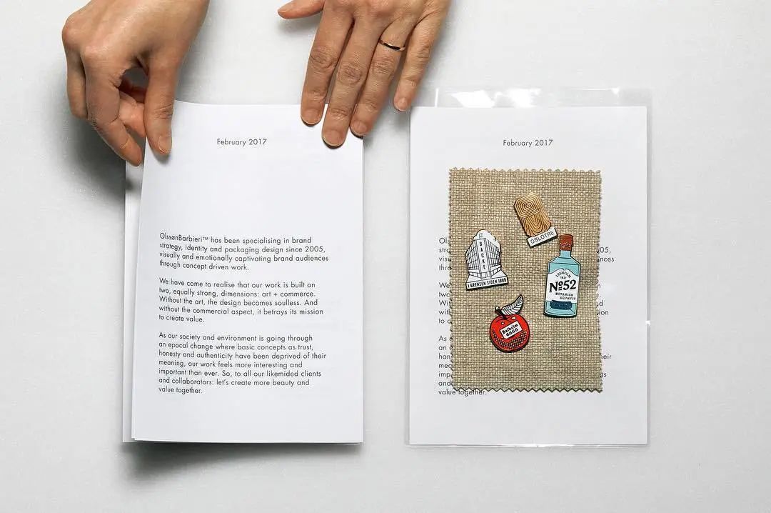 OlssonBarbieri工作室与合作过的客户也保持着亲密的关系,工作室有一个“小传统”,每到年终,他们会将一年中所做项目的优秀设计精选出来,把它们做成一套精致可爱的胸针,送给客户表示感恩和纪念。