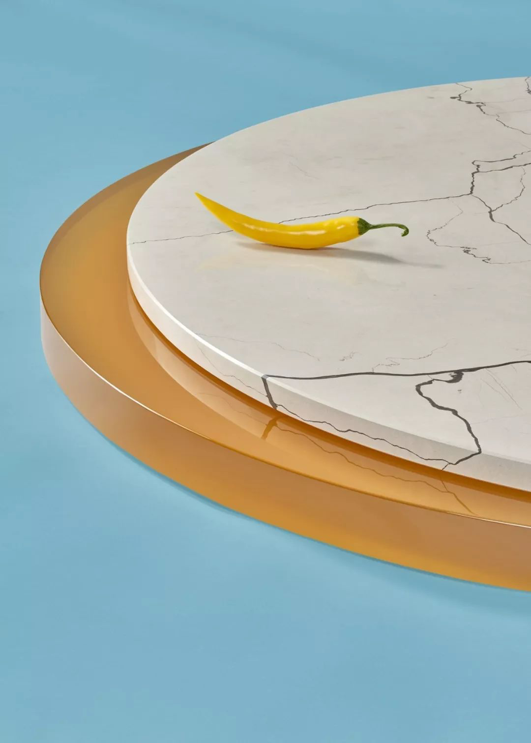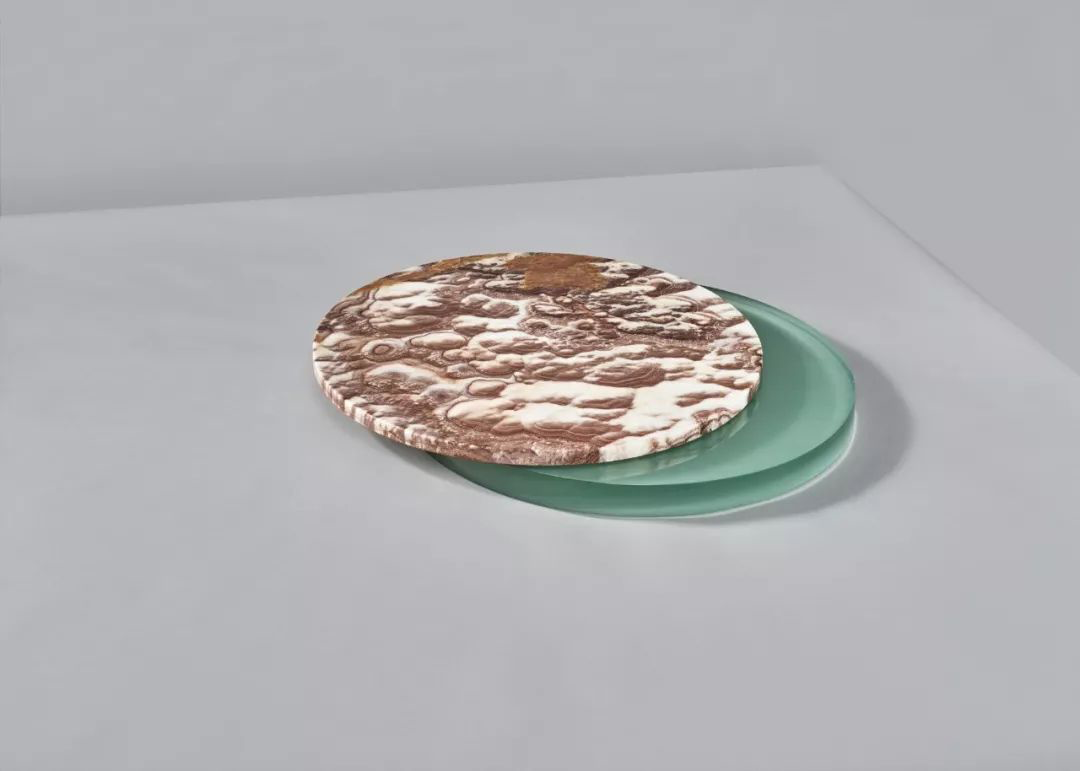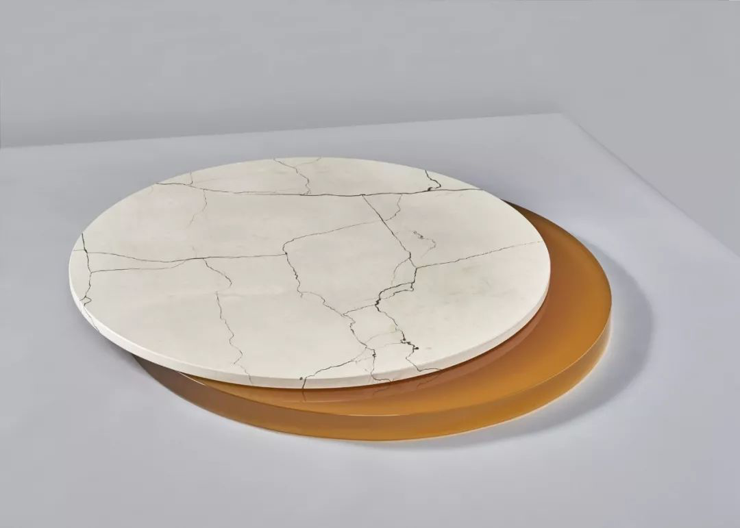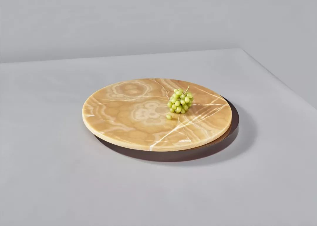 在中国人的餐桌上市场出现的旋转玻璃菜盘,在这里成了用树脂材料创造出的美好存在。轻盈的半透明材质与有着美丽花纹的圆盘之间,形成了非常独特的美感。