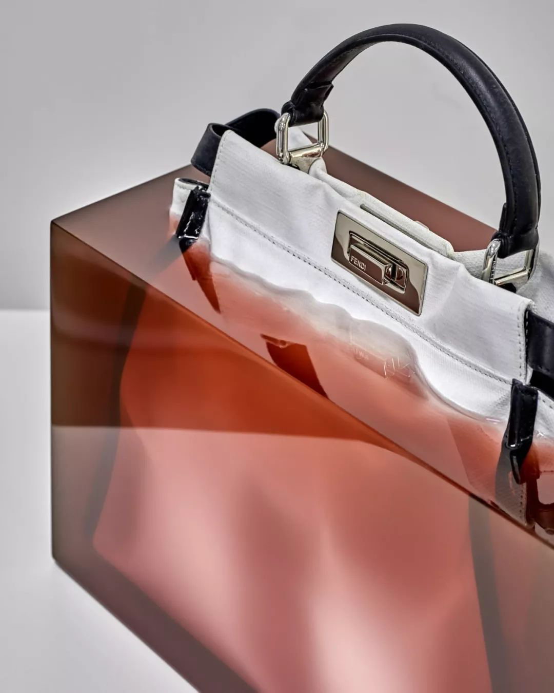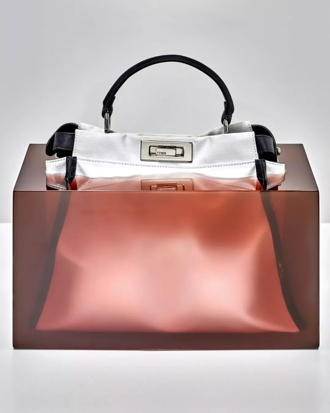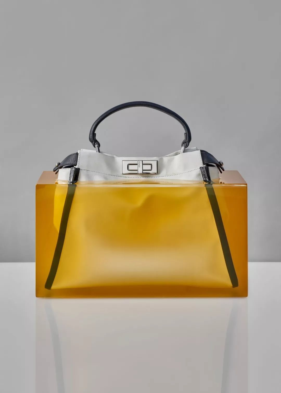 设计师将芬迪的经典 Peekaboo 手提包「冻结」在树脂块中,通过这种称得上是「艺术行为」的方式,显示了这款经典手提包的功能性和耐用性。