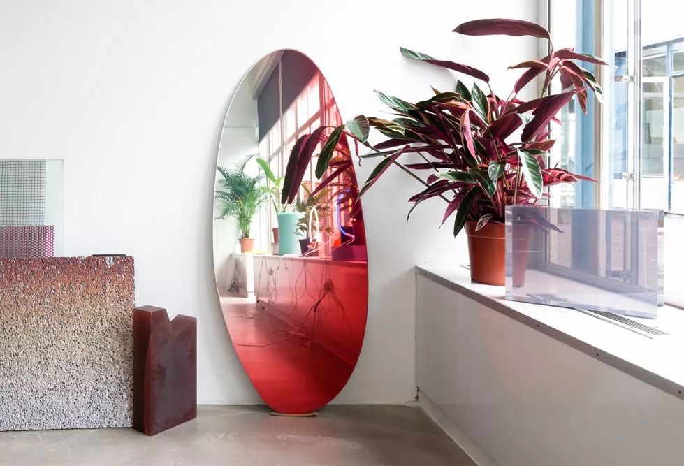 这组镜子系列最独特的地方就是上面的色彩,渐变的色彩将形状和空间融为一体,与人们对反射和周围空间的感知相呼应。