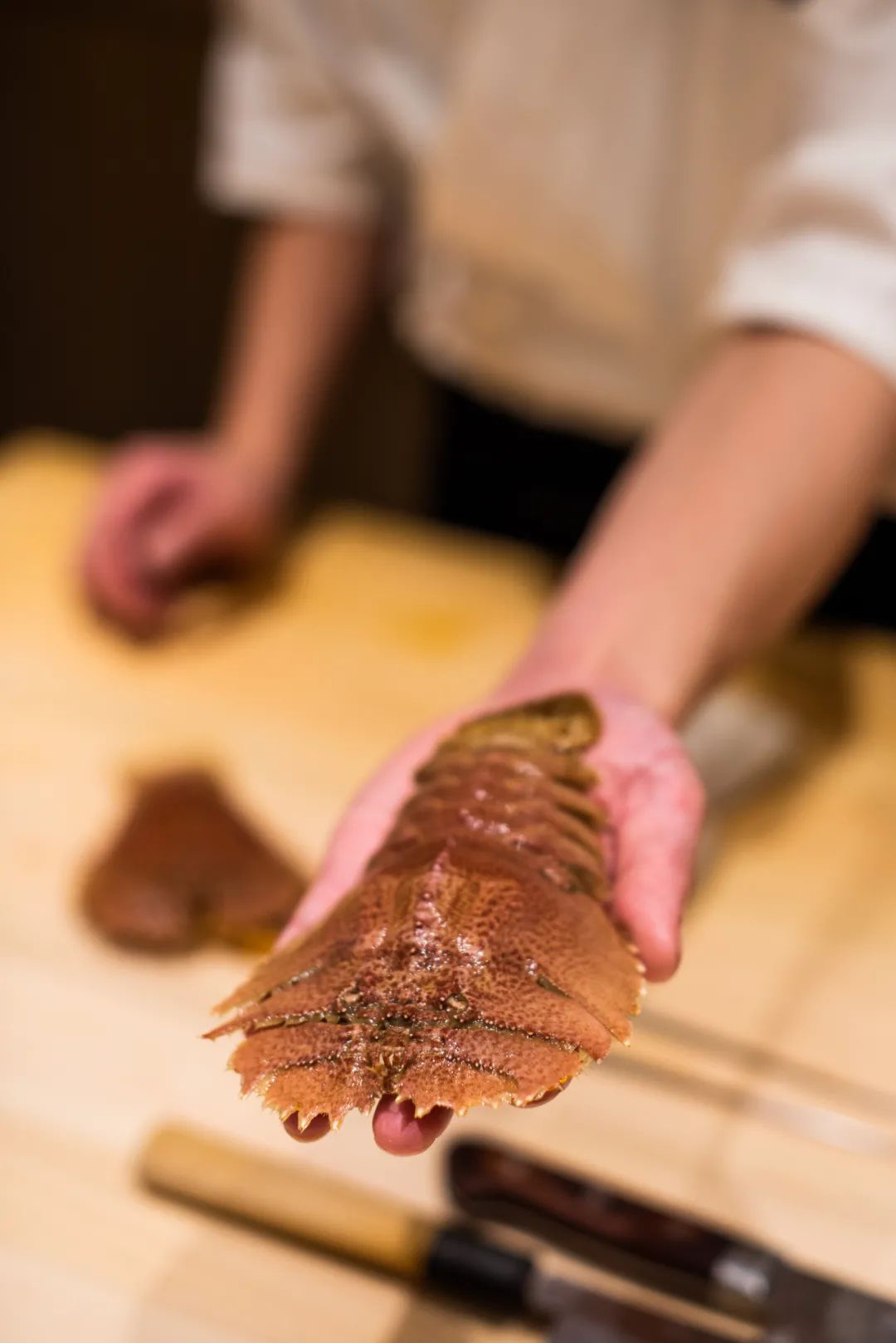浙江琵琶虾,捏起来还会扑棱。别看扁扁一只,取出的肉很是肥厚,比龙虾更甜软。水月最近也在用琵琶虾捏寿司,国产食材好评!