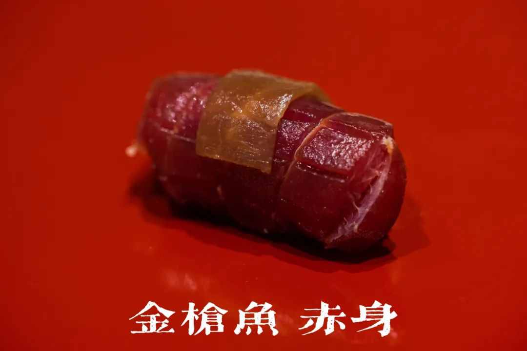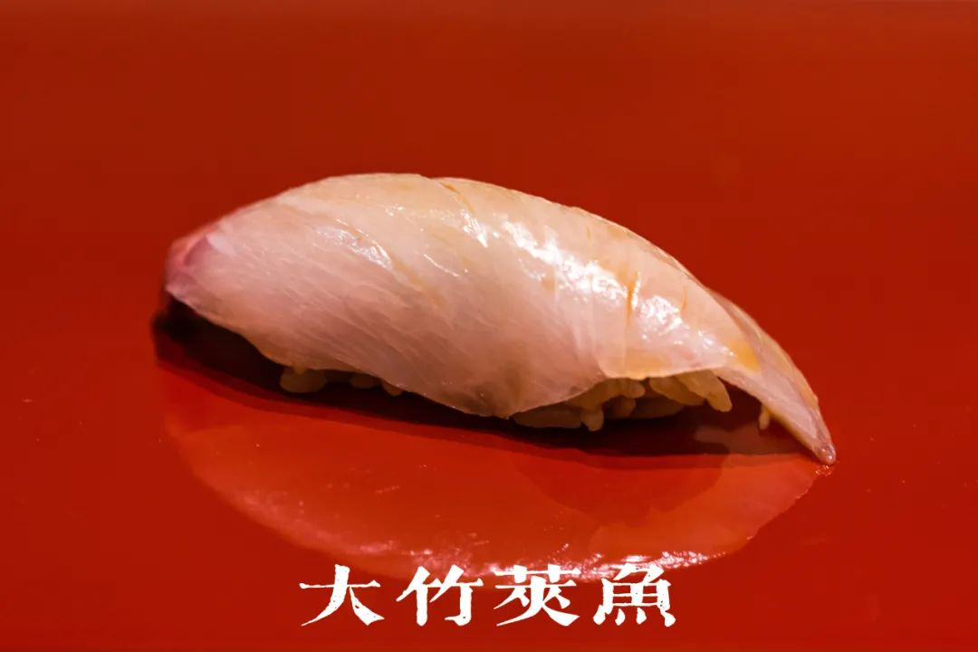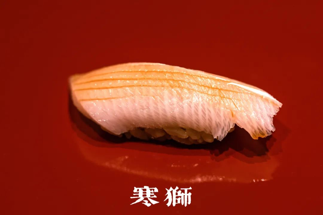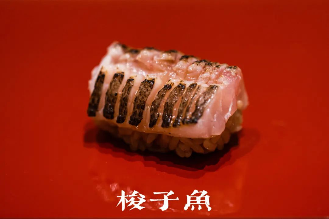🍣梭子鱼:鱼皮油脂丰富,炙烧过捏成一贯,鱼油渗入鱼肉及米饭,甘香得很。
