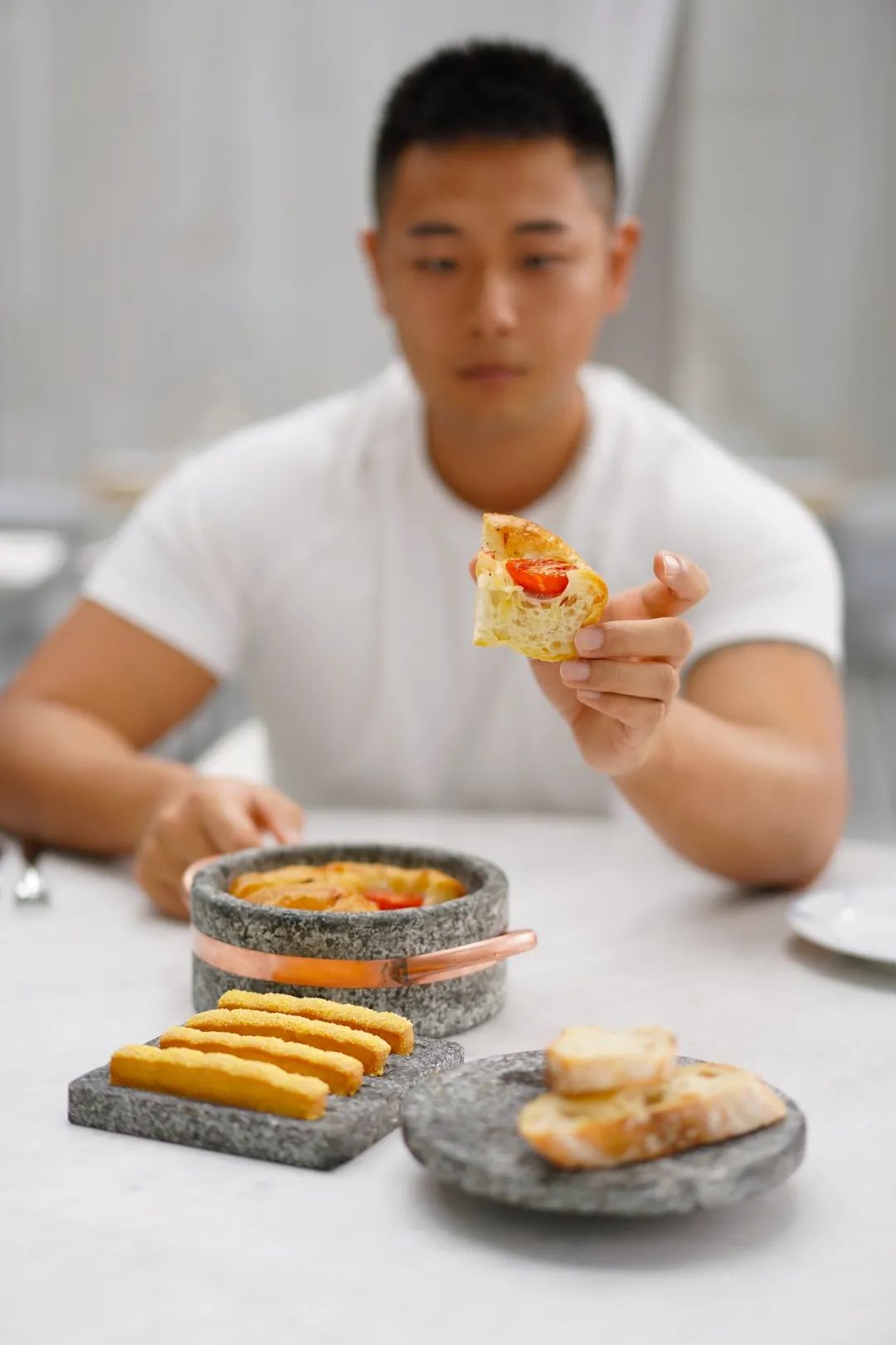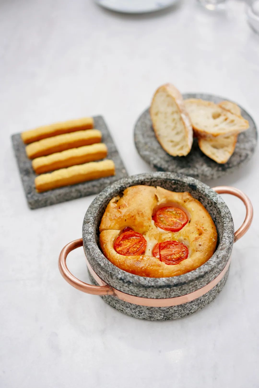 番茄佛卡夏、玉米面包棒、原味小法棍。 从这里开始,进入意大利菜的碳水狂欢!