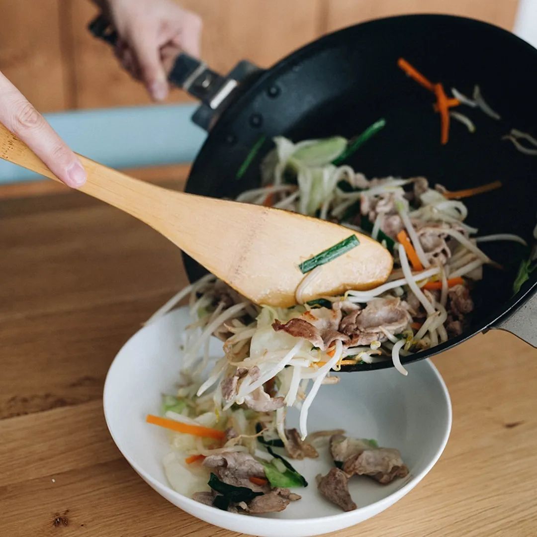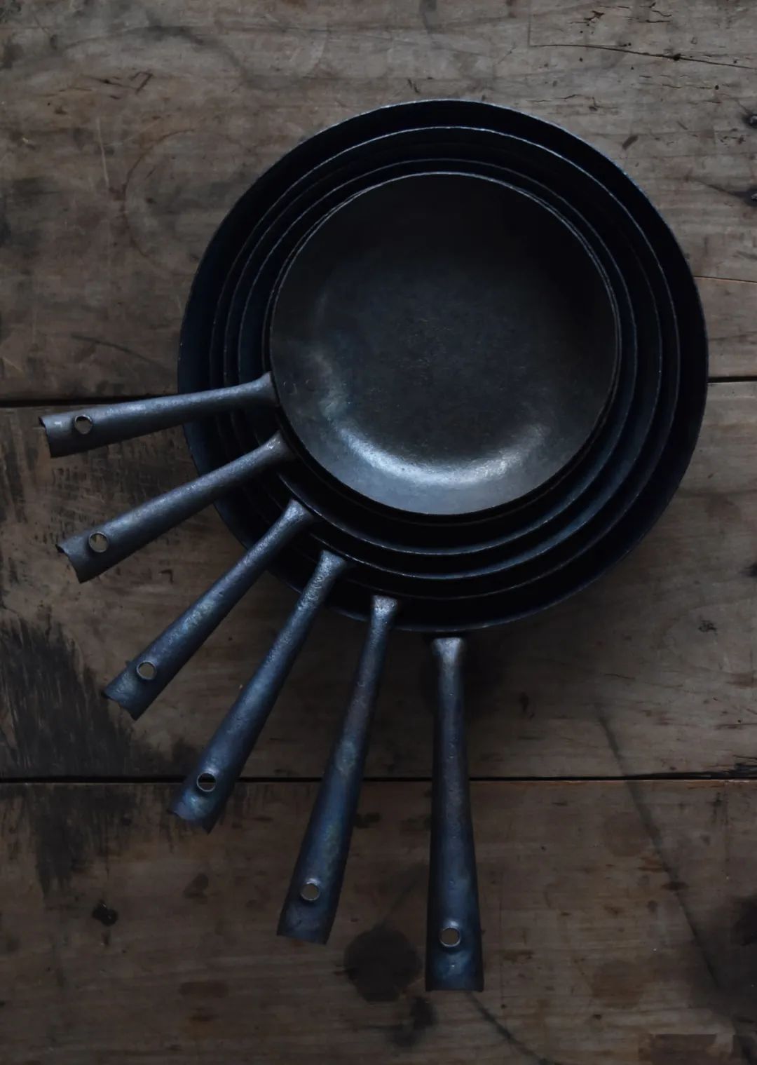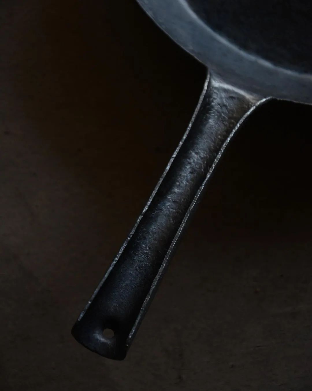 成田理俊与上田裕之同样作为日本一流的手打炊具作家,不同的是成田理俊更注重于传统日式煎锅,通过细微的手工调整来打造好用耐用的铸铁炊具。一直以来作为定番推出的「冲压铆钉手打平底煎锅」共有六个尺寸,满足了所有日常的中式煎烹需求,无涂层的手工锻打也能最大程度锁住食材本味。