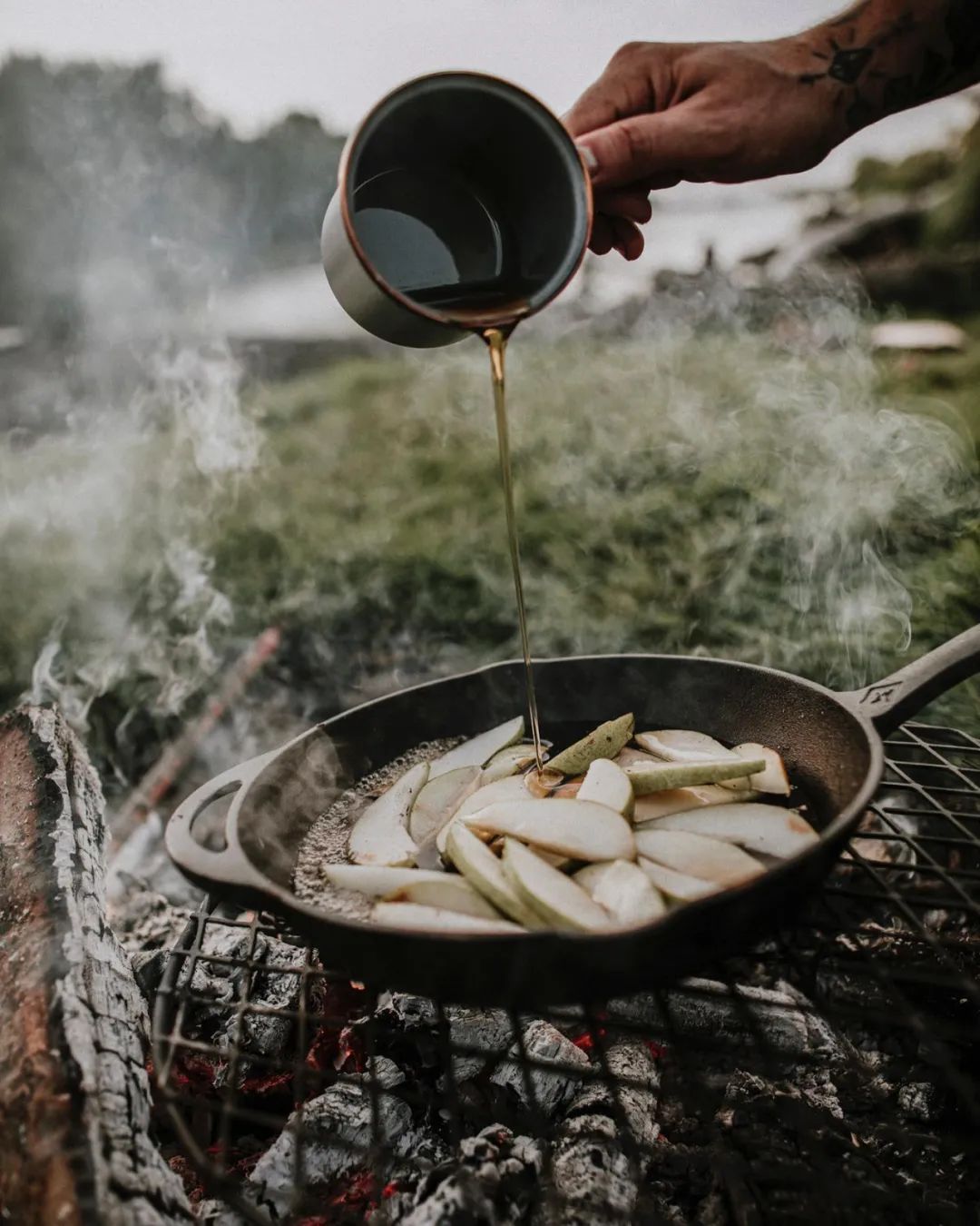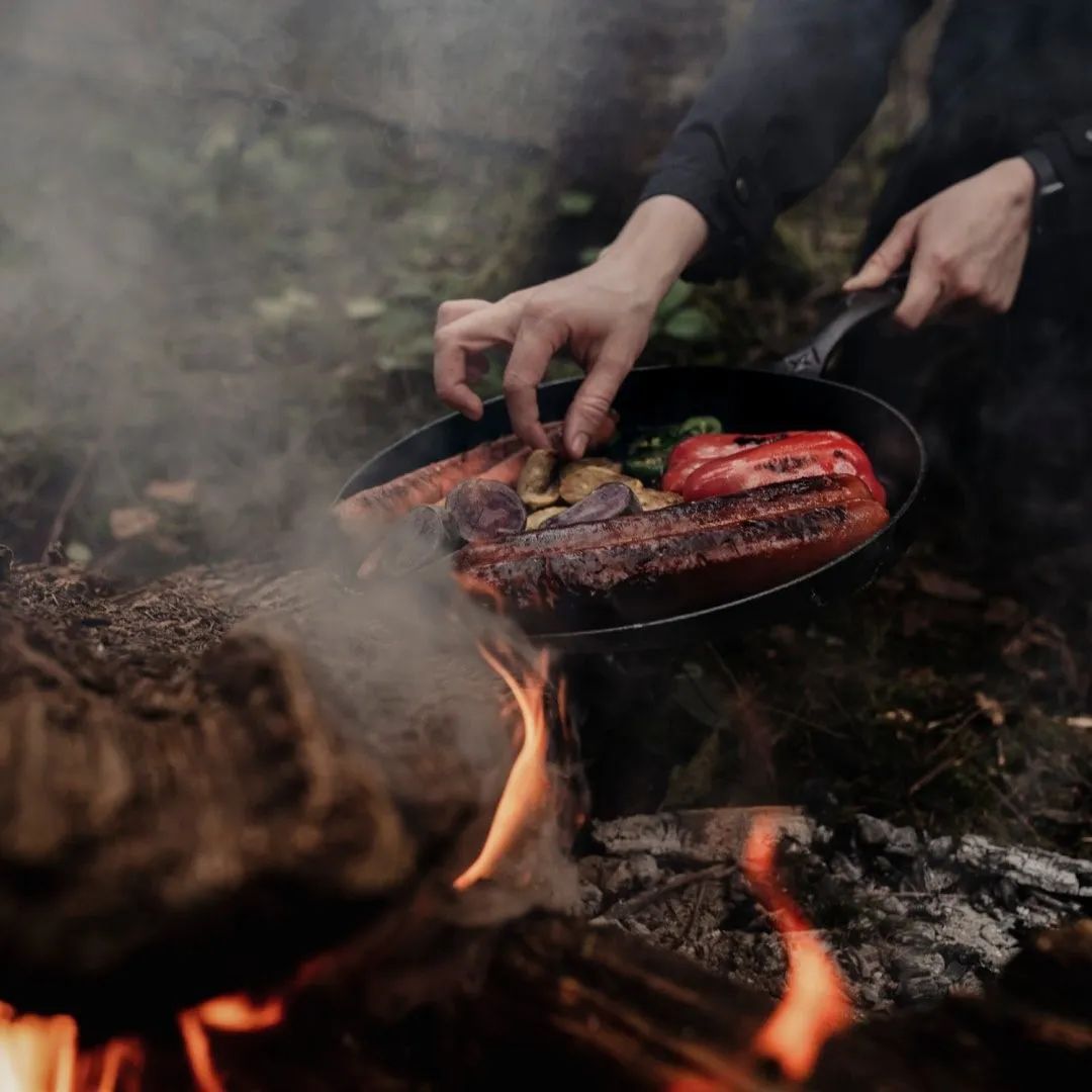 Barebones在之前露营刀具中就有和大家介绍过,作为北美新晋户外生活方式单位,Barebones也打造了一系列兼顾耐用且定价亲民的炊具。Cast Iron Skillet作为旗下销量高居不下的定番款以铁合金打造,融入的钢成分使得Cast Iron Skillet比起传统铸铁煎锅的重量要轻至少15%,亦是增强了整体的刚性与导热性,在户外复杂的环境中同样可以提供稳定的烹调体验。