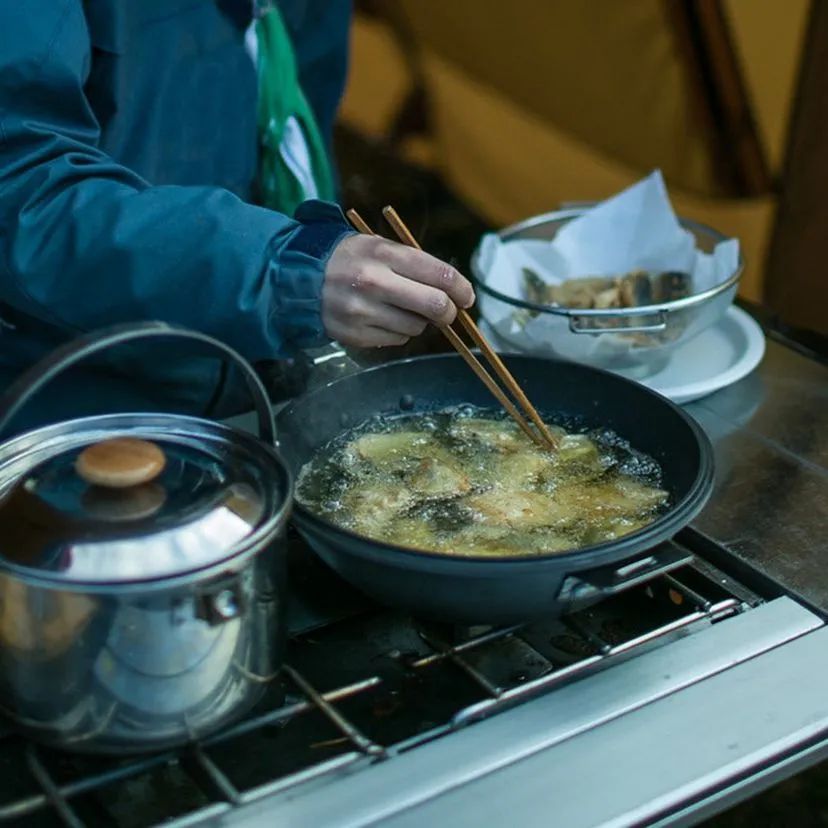 HOME&CAMPクッカー26甚至可以说是目前折叠户外煎锅中最适合亚洲烹调手法的铸铁锅。