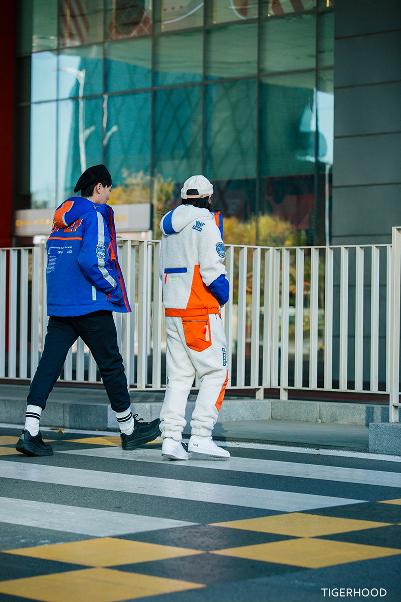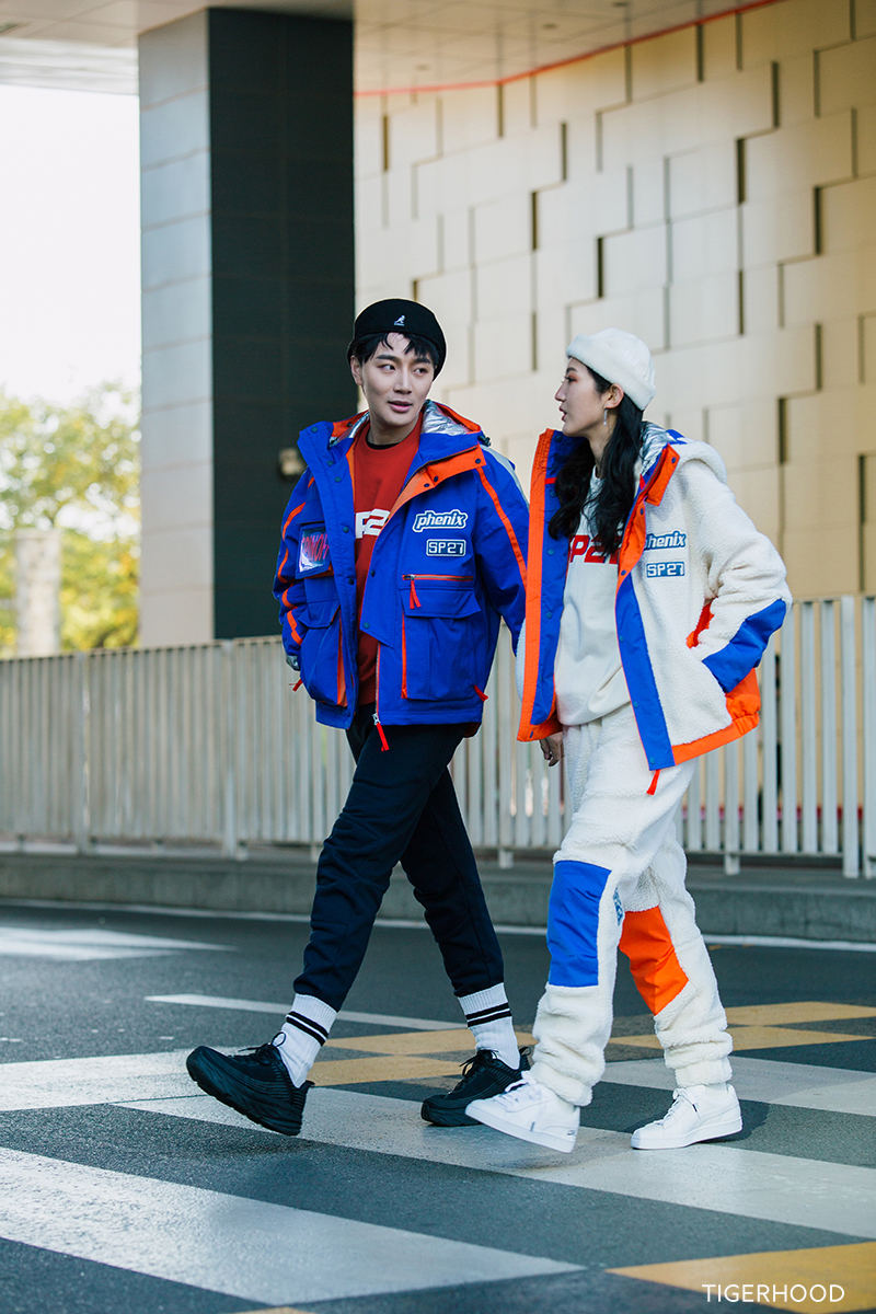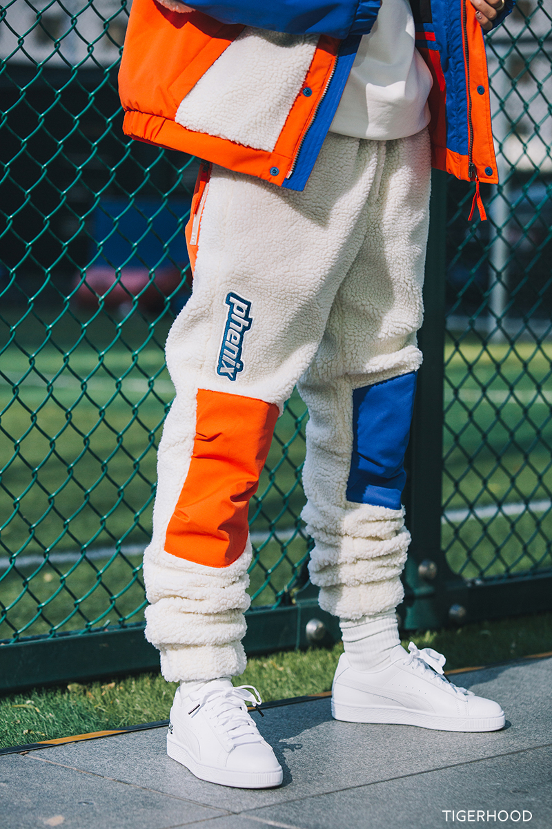 复古撞色搭配-想要维持撞色系的复古街头风格同时还能搭出潮流质感,那么在细节上就要下足功夫。正如这两套LOOK因为本身外套的色彩足够多元,所以内搭和裤子我们分别选择了 phenix 的套头针织衫、休闲抓绒长裤、休闲运动长裤,尽量以纯色系为主,避免颜色过多略显复杂。