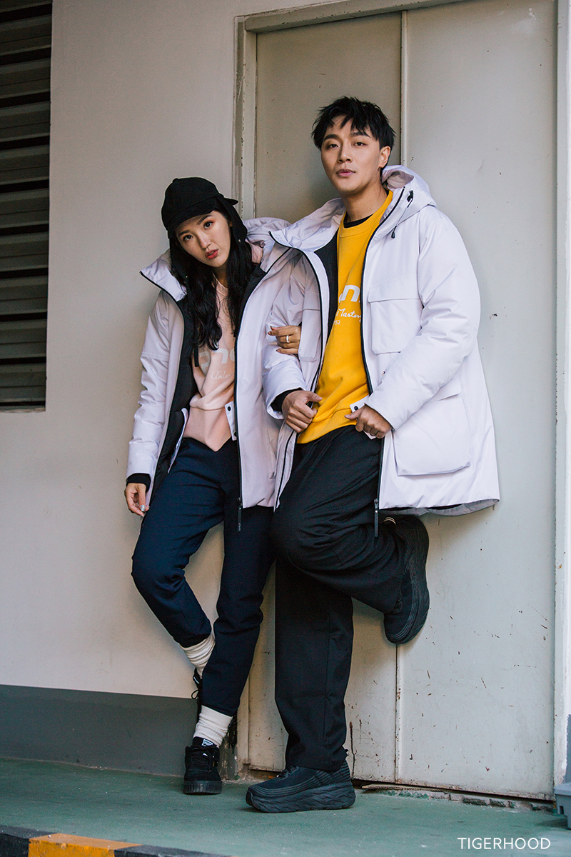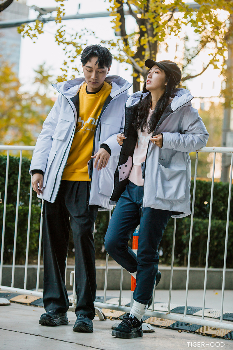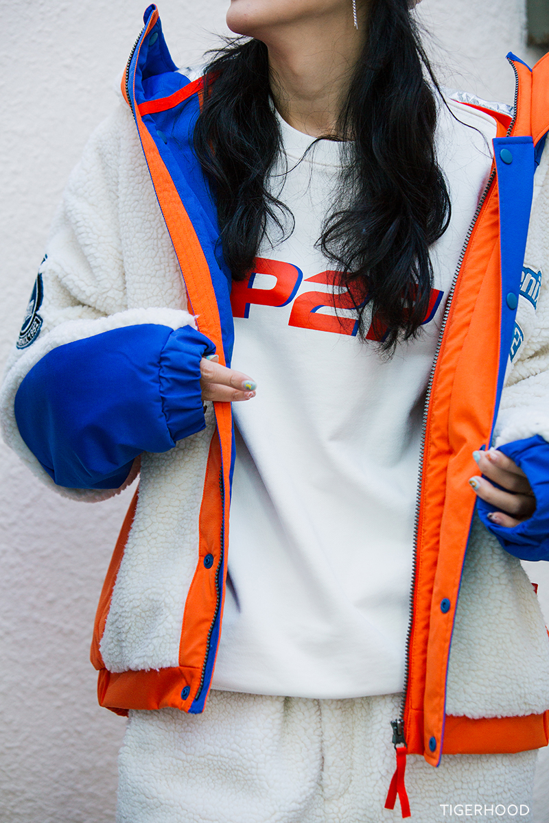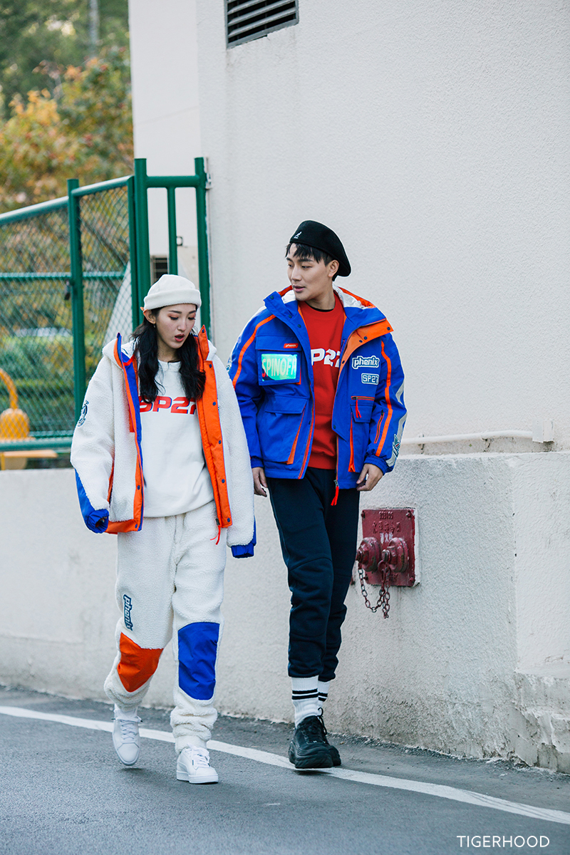 复古撞色搭配-想要维持撞色系的复古街头风格同时还能搭出潮流质感,那么在细节上就要下足功夫。正如这两套LOOK因为本身外套的色彩足够多元,所以内搭和裤子我们分别选择了 phenix 的套头针织衫、休闲抓绒长裤、休闲运动长裤,尽量以纯色系为主,避免颜色过多略显复杂。