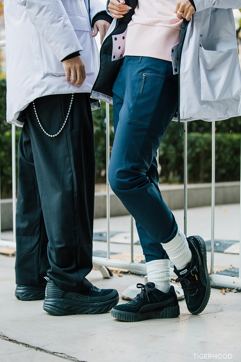 鞋履的选择上可以用当下热门的复古球鞋进行修饰,但也尽量与全身配色呼应,其次白袜的特别搭配还能在复古氛围中营造出潮流气息满满的 City Boy 风格。