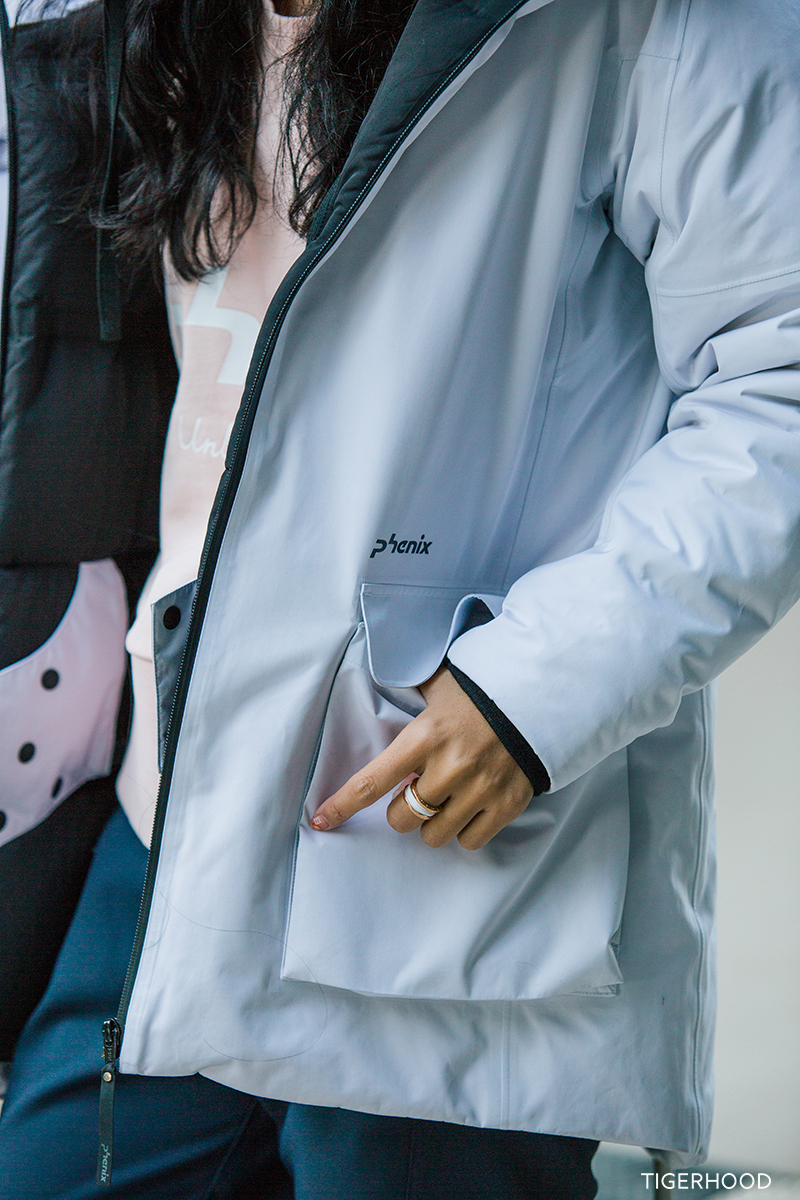 从办公室到滑雪场-此外 phenix 在每一个设计细节中都进行了深度的思考:衣服内部的排气孔可以轻松排汗、YKK防水拉链让你不惧雨雪寒冷、内部拉链方便收纳小物、立体翻盖口袋兼顾了实用功能和设计感。