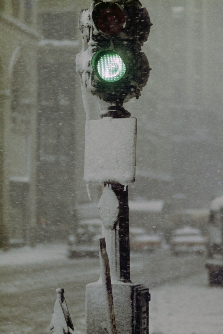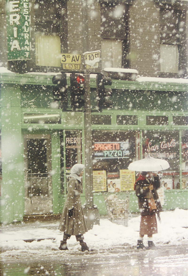 整个纽约在Saul Leiter的镜头下开始被填色、分割、抽离、淡化、隐藏、重塑,仿佛梦境般被他塑造成了多维世界。大片色块的运用、超强的明暗对比关系、重新调配的超现实色系、以及独特的镜面世界构造,让本身就独一无二的纽约变的更加让人神往。没有人知道照片中的人们在思考些什么,而纽约的下一场大雪将会何时到来?