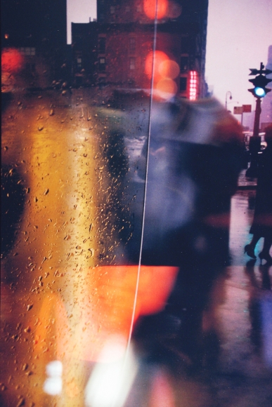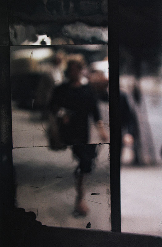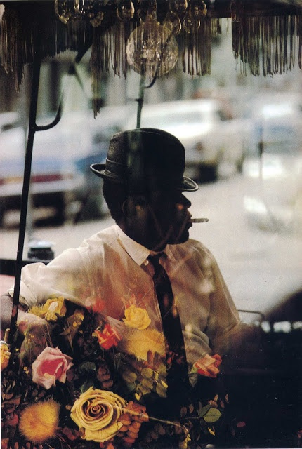这种拍摄手法让Saul Leiter在作品的创作上有了更为鲜明的风格,其次这种窥视所带来的神秘感让人不禁对作品产生了不同的解读。所以甚至有些时候Saul Leiter会刻意通过一些物品来遮挡住部分镜头进行拍摄。用他的话来说就是:“一扇滴满了雨水的窗户,比一张名人照片更让我感兴趣。“