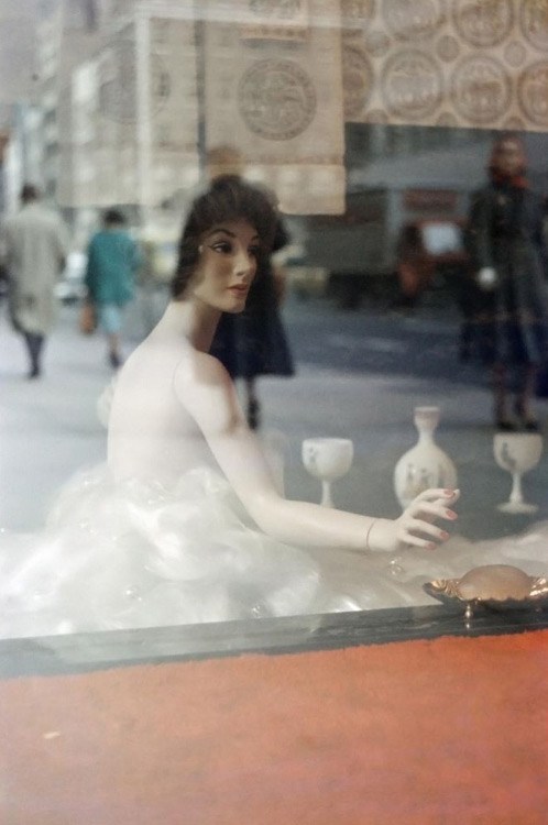 除了色彩之外Saul Leiter同时也将纽约街头的一人、一物、一景,都抽象为了一个色块、一个形状、以及另外一种形态。也许你会说那是因为那个年代的场景和相机叠加所产生的时代效果,但其实Saul Leiter本身所使用的拍摄技法非常大众,甚至理论知识还不如现在的摄影发烧友。不过可贵之处在于他的不断尝试,以及对于摄影主题的不断延展,当你在拍摄具体物品的时候,他其实在创造生活。