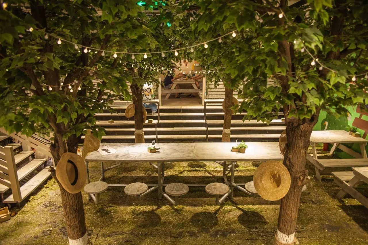 别看它是在室内,Green & Safe Le Petit努力营造出公园家庭野餐的氛围——餐厅里铺上草坪,种了树,上面挂着很多暖色的串灯;而脚下,则是人工铺设的“草地”;用餐的座椅也是公园中常见的木质原色,所有的元素结合起来,打造一种真实的“公园野餐”的感觉。非常适合亲子家庭,对孩子来说,轻松自在地用餐才是最舒服的打开方式。