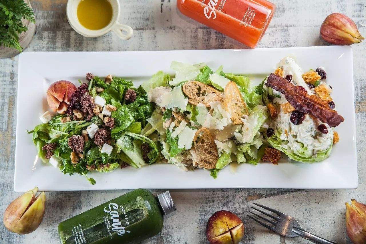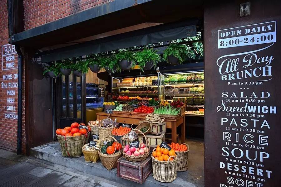 值得一提的是,Green & Safe一直遵循“健康安心美味” 的诉求。餐厅进门就是一个简易的超市,走进去你就可以看到各类有机蔬菜、有机水果、肉类、食品原料和酱料等;不少的食材都是出自Green & Safe家位于昆山的有机农场,新鲜又健康。所有的沙拉现点现做,透明化的厨房可以一目了然整个备餐过程。它们也会运用产地的食材特性,同时遵循节气和时令,更新应季的菜单。
