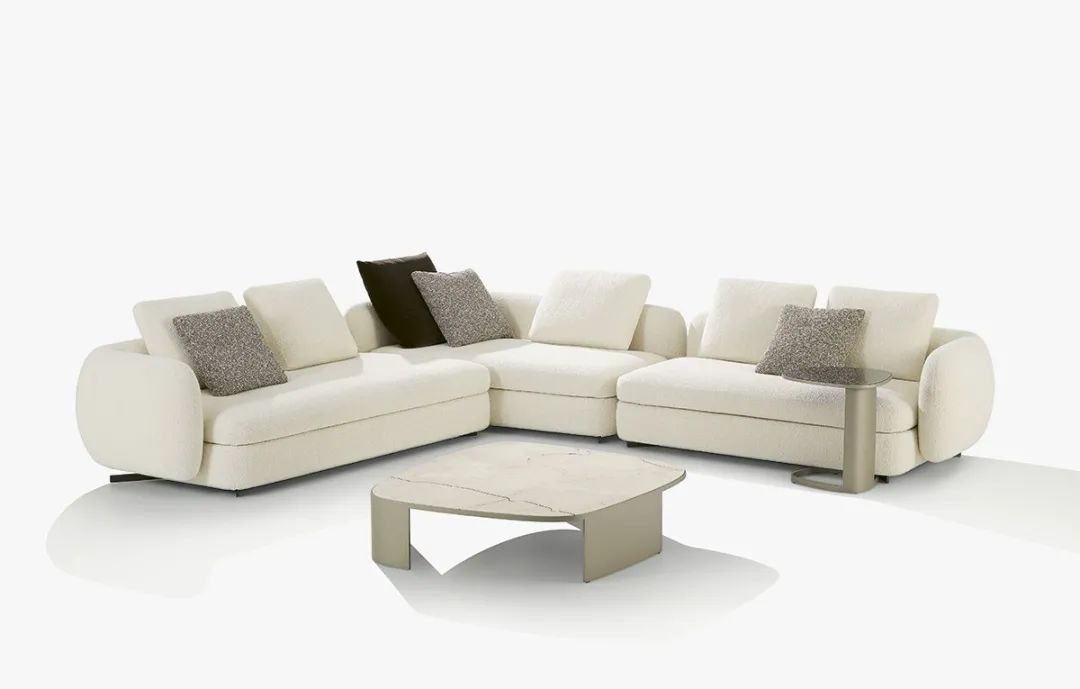 这款沙发可以有单个选择或是 L 型配置,有织物和皮革表面可供选择。