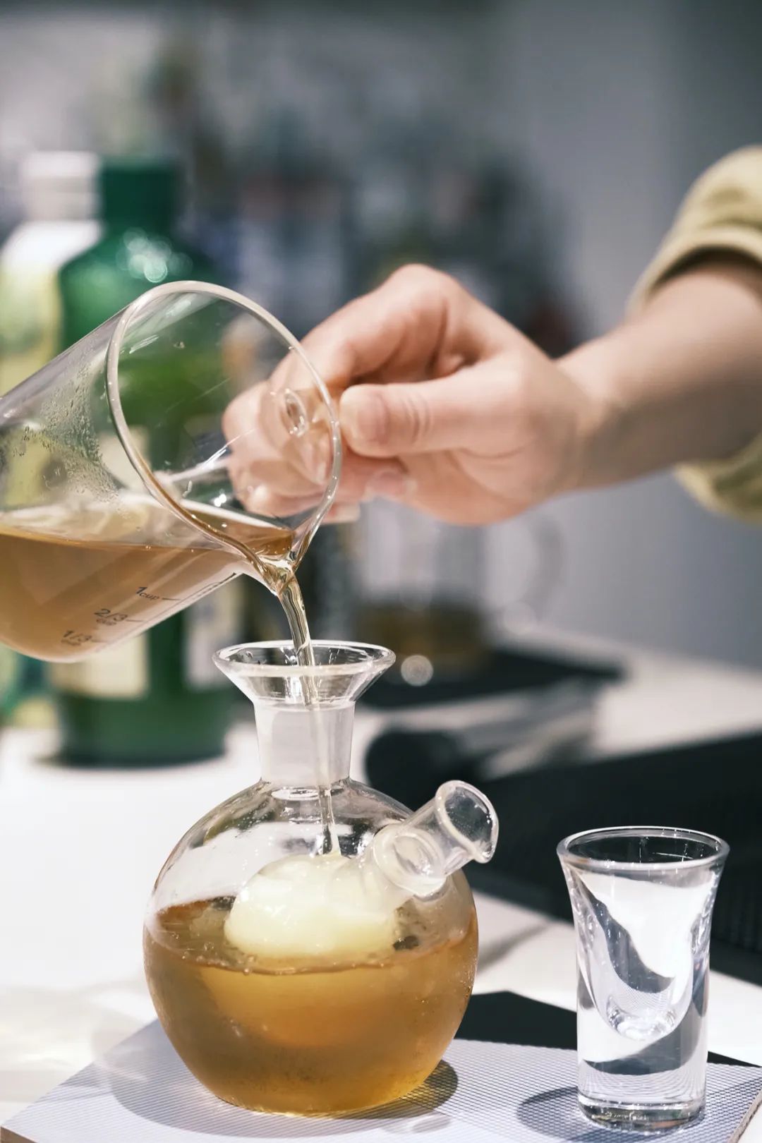 家族里六代事茶的Nicole格格在2016年开始涉及到新中式茶饮这个版块时,市场上还尚未出现这个概念。当时正在外聘教学传统茶课的Nicole格格和朋友发现,学生们对传统茶的冲泡并没有太浓厚的兴趣和热情,于是他们几位老师便在私下尝试将咖啡、调酒和茶进行了结合,在实验了半年后才逐渐引入到教学体系中,并收获了很显著的效果,他们与同学们一起创新研发了40多款茶特调应用。