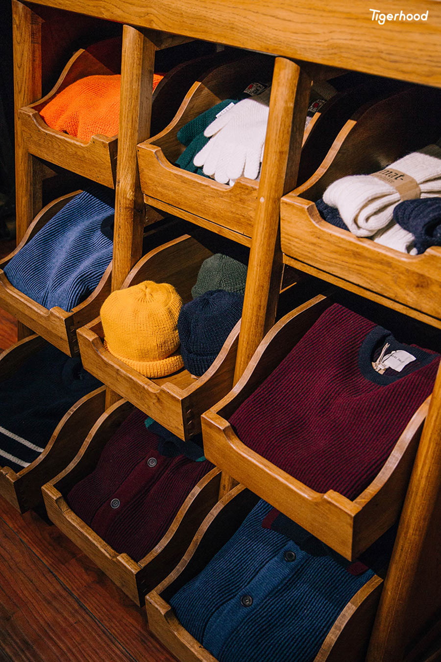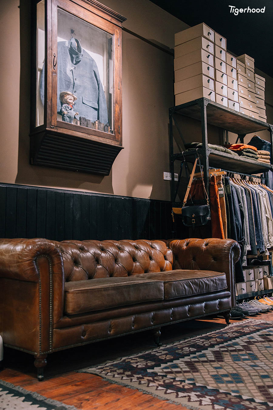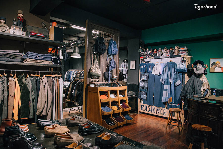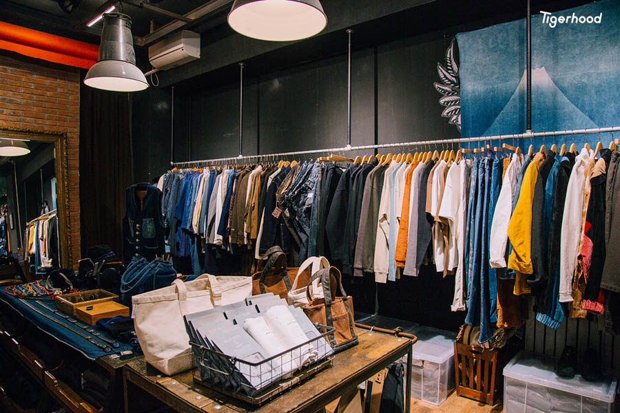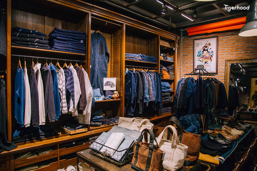 店铺内代理诸多美国老字号工厂出品的手工皮衣、皮靴、牛仔裤、帆布包。同时也有不少vintage牛仔古着,40年代-70年代的原版古董Lee、Levi's、Wrangler等等,同时也吸纳了不少非传统复古发烧友会追捧的品牌,使风格极尽多样化。