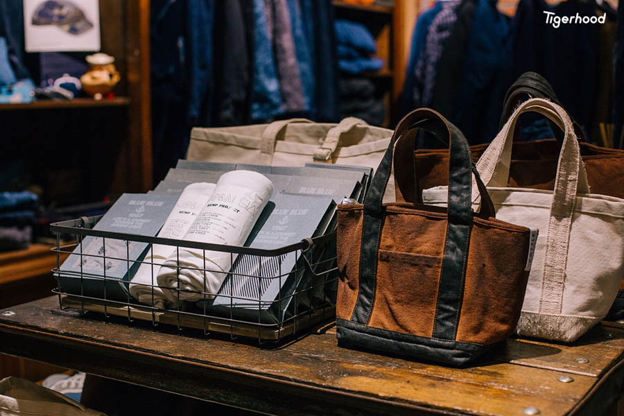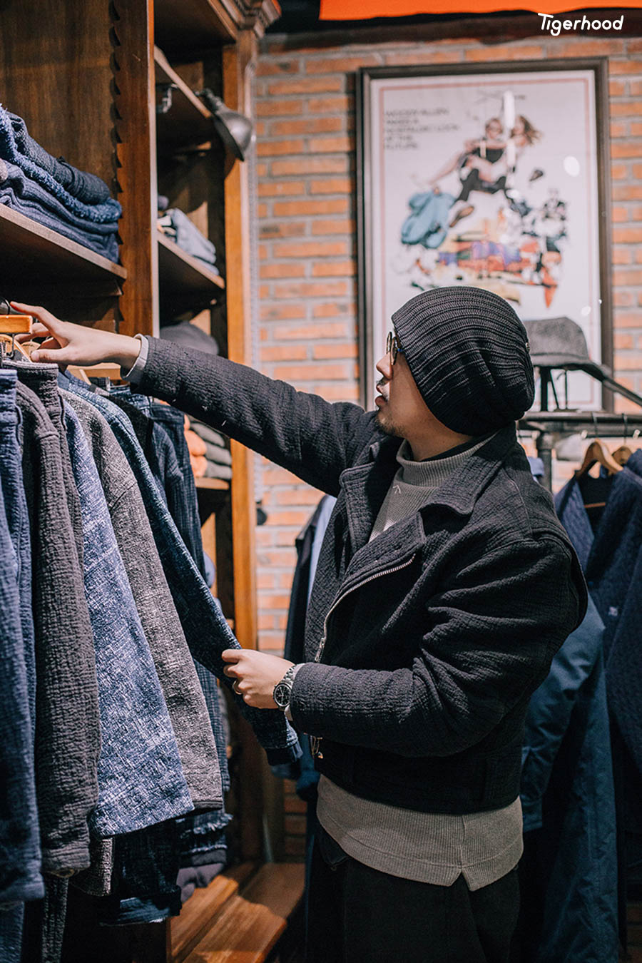 在RADIANCE-Blue除了复古工装,还可以找到颇具匠心的日本蓝染,店里占据大量篇幅的 Blue Blue Japan 以及 Porter Classic,以蓝染见长且耳熟能详的日系品牌。Blue Blue Japans是以牛仔品牌起家,当时就被许多丹宁原牛收藏者视为专业精品,时至今日仍然坚持着全手工操作染色,这种匠心着实不多见了。Porter Classic是Porter的支线品牌,融入了60年代那种粗犷潇洒的气质,很有经典蓝调的味道,设计更加日常好搭,风格上也偏向于年轻人。