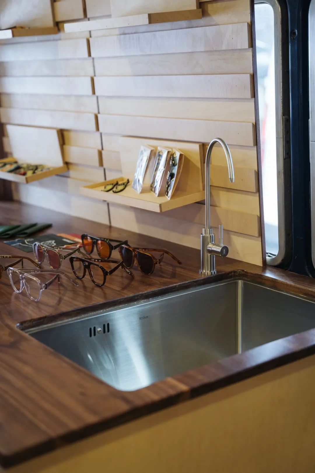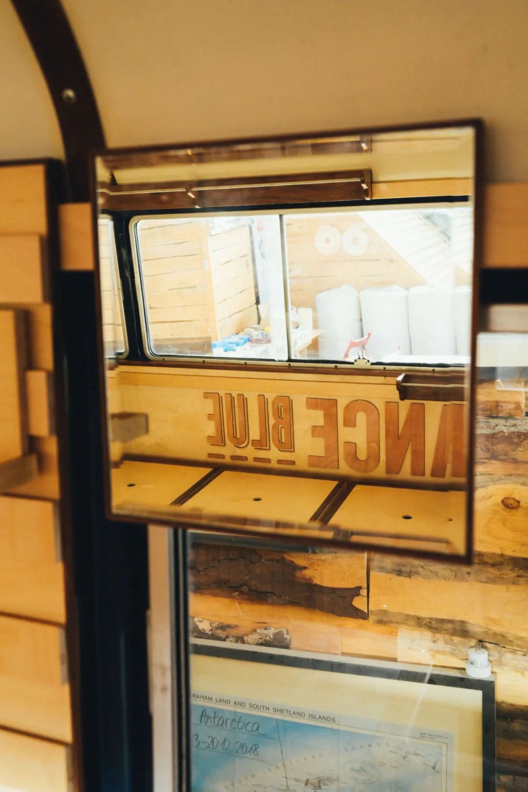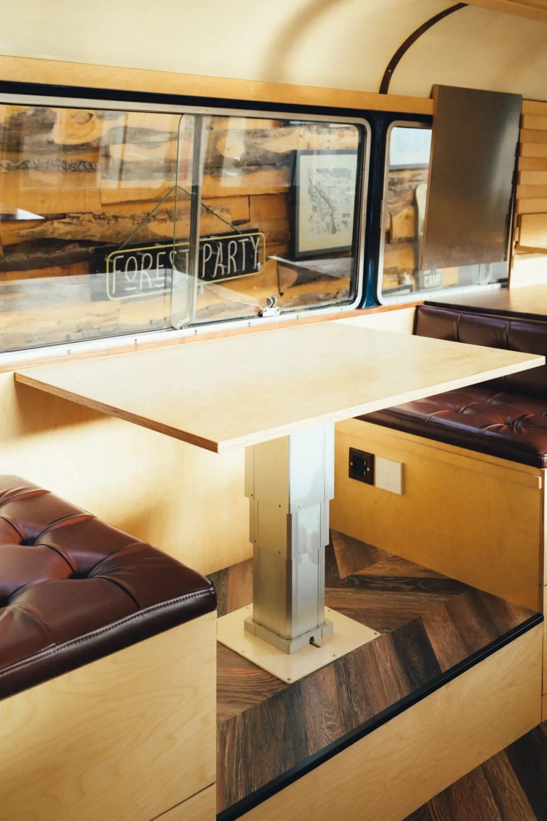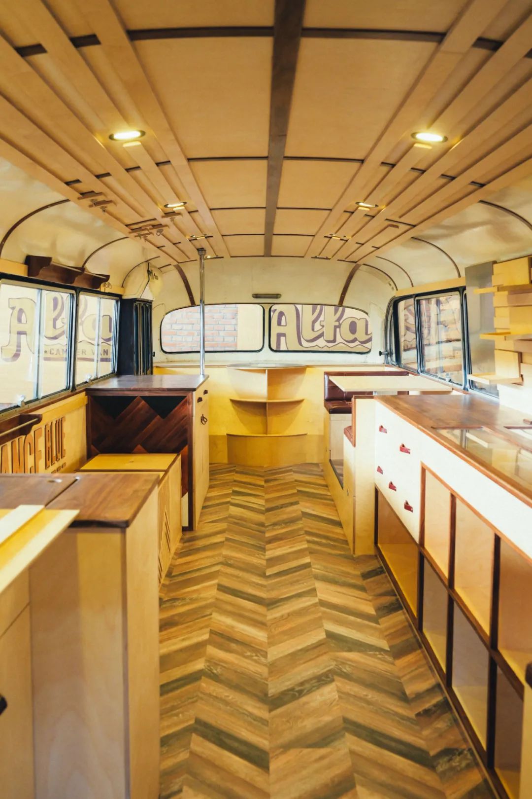 RADIANCE-Blue的Blue Bus里通过后期改造,内部设有店员座位,展品展陈区,更衣室,及可供客人休息的对座沙发。满足使人沉浸于一个移动零售基站的全部需求。