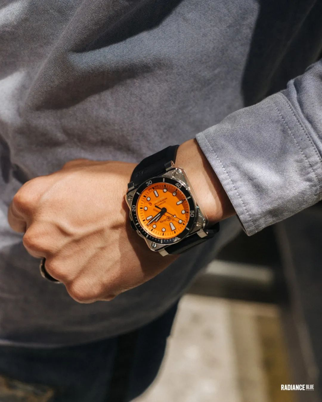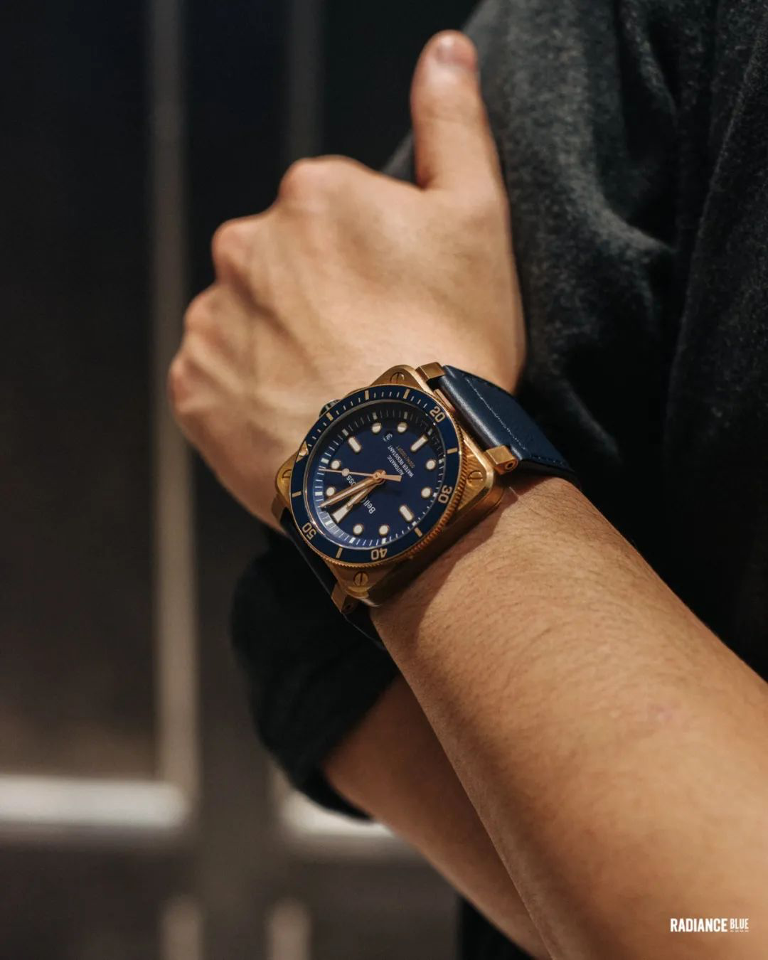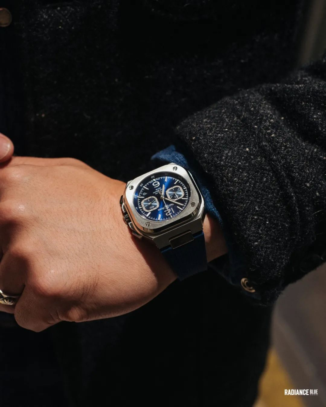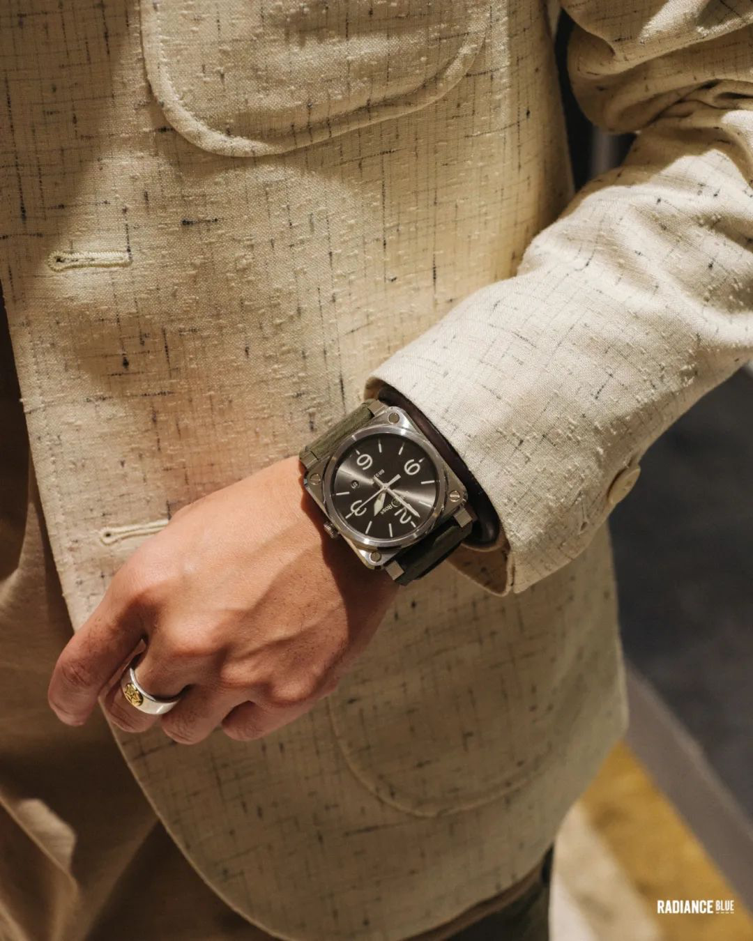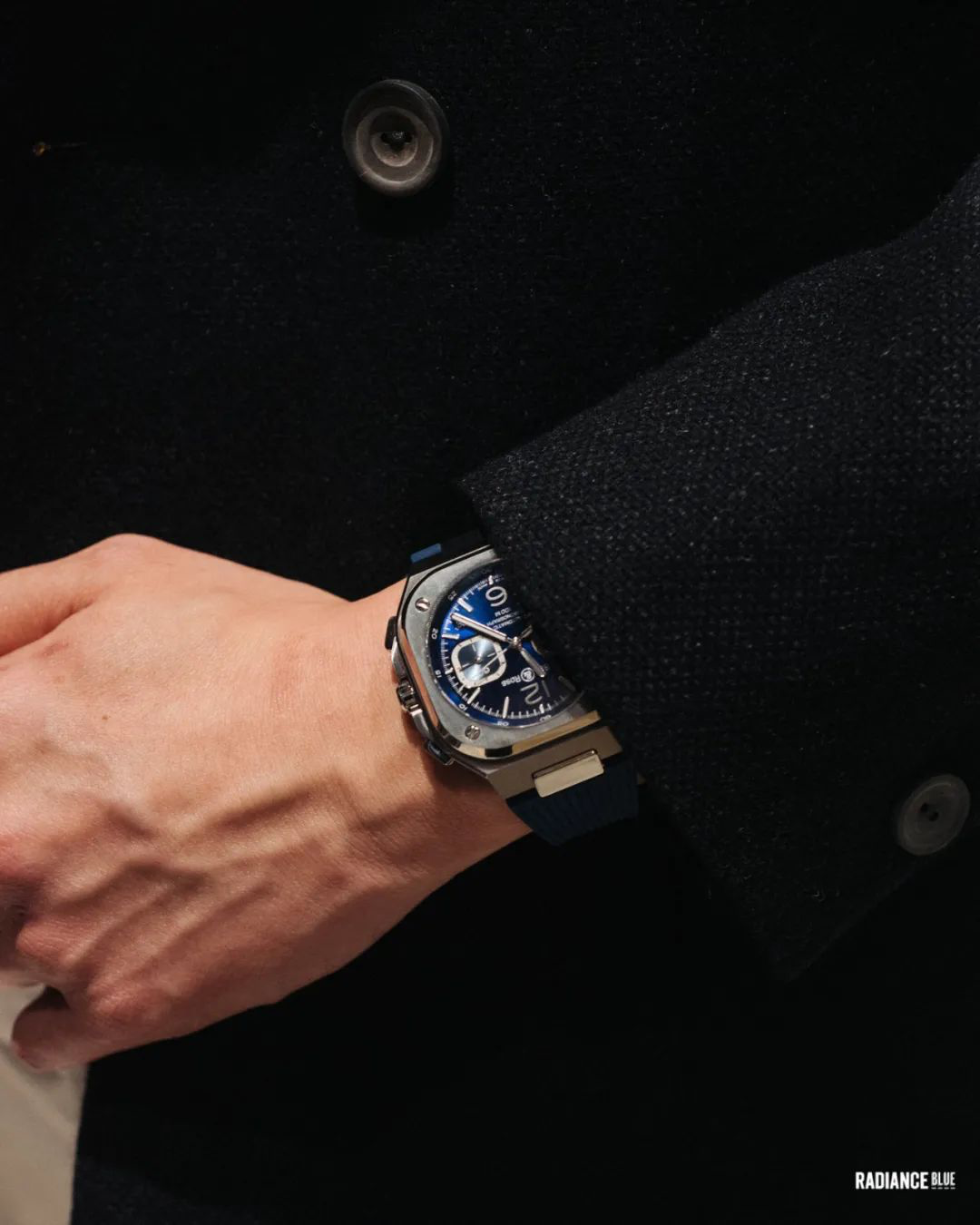 新的一周好。11月初,RADIANCE-Blue联袂新锐美学腕表Bell&Ross进行了一场新品展示与交流活动,为此浮现了目前在国内首次推出的BR05系列,这次发布地点选择在RADIANCE-Blue位于上海BFC外滩金融中心店,以男士经典绅装玩出的Neo Classic风格语境下加之厚重钢筋结构的外滩写字楼匹配新款腕表,气场上即可达到同频的效果。